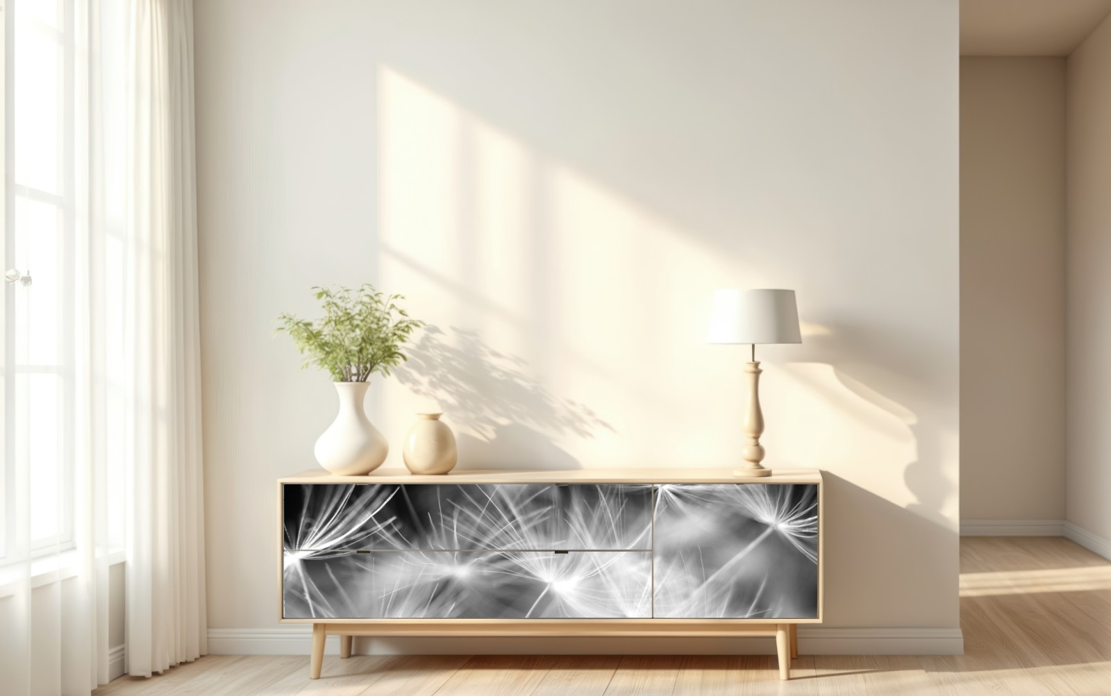 Repositionierbarer Aufkleber Zarte löwenzahnsamen in monochrom