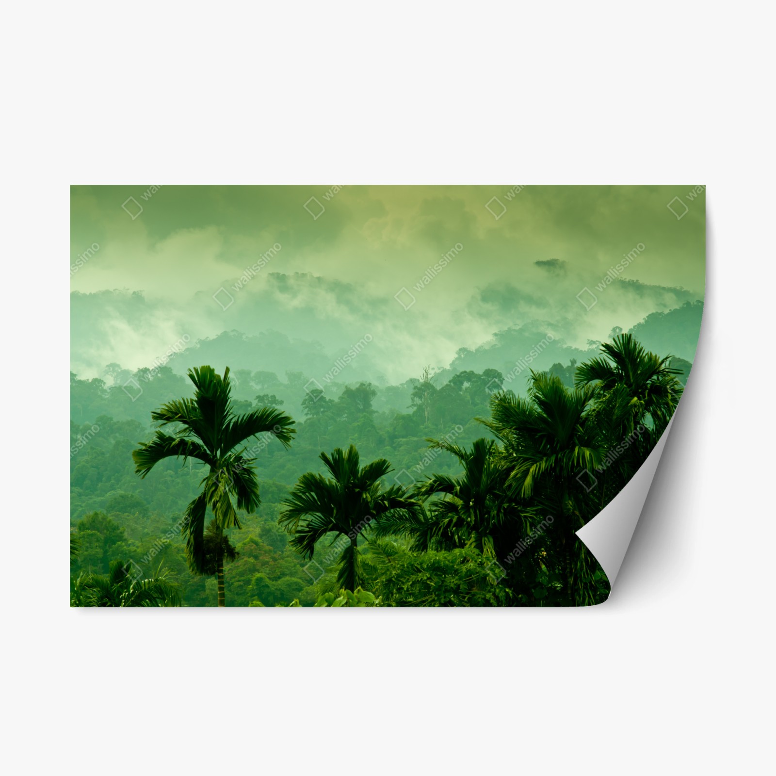 Repositionierbarer Aufkleber Neblige tropische dschungellandschaft