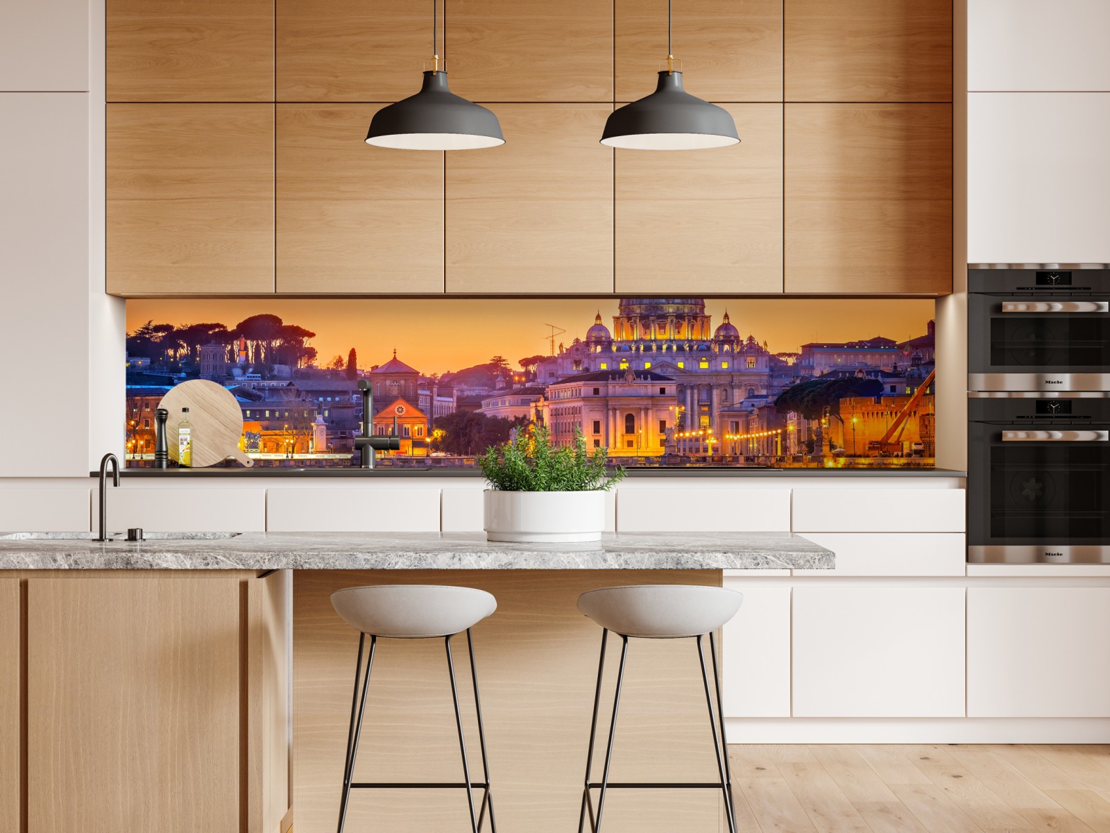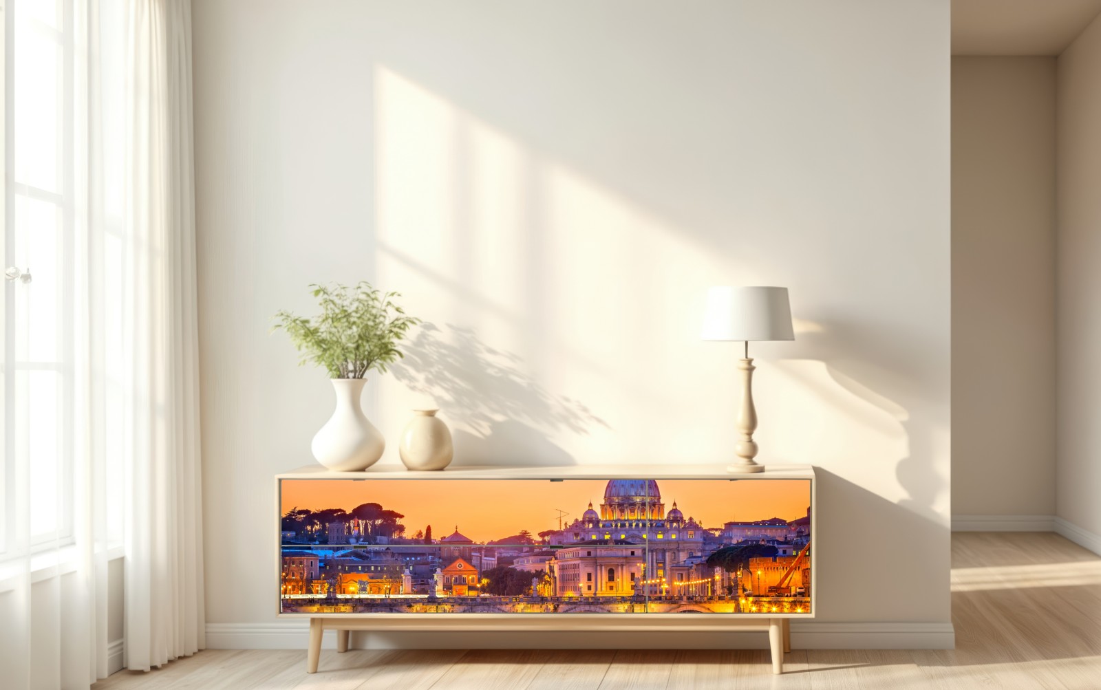 Repositionierbarer Aufkleber Sonnenuntergang über dem Petersdom und dem Tiber