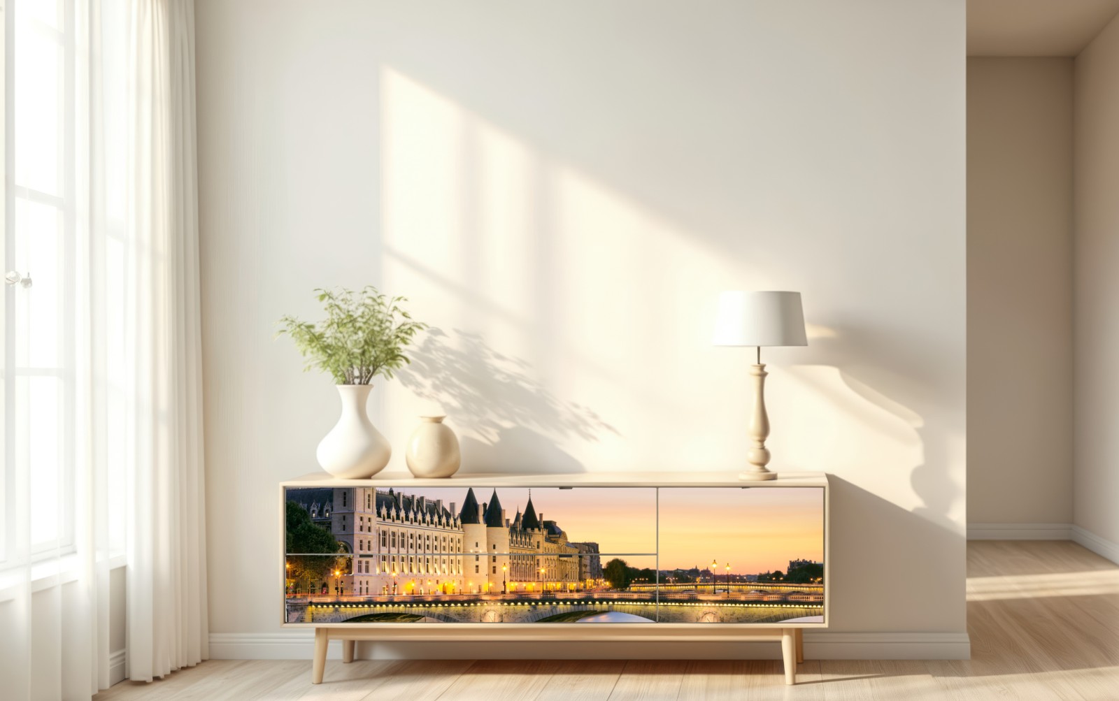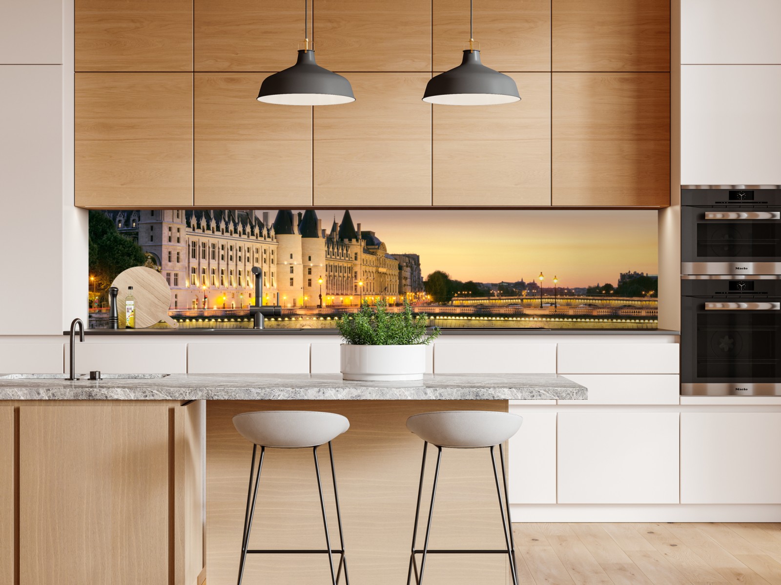 Repositionierbarer Aufkleber Paris sonnenuntergang über der historischen brücke