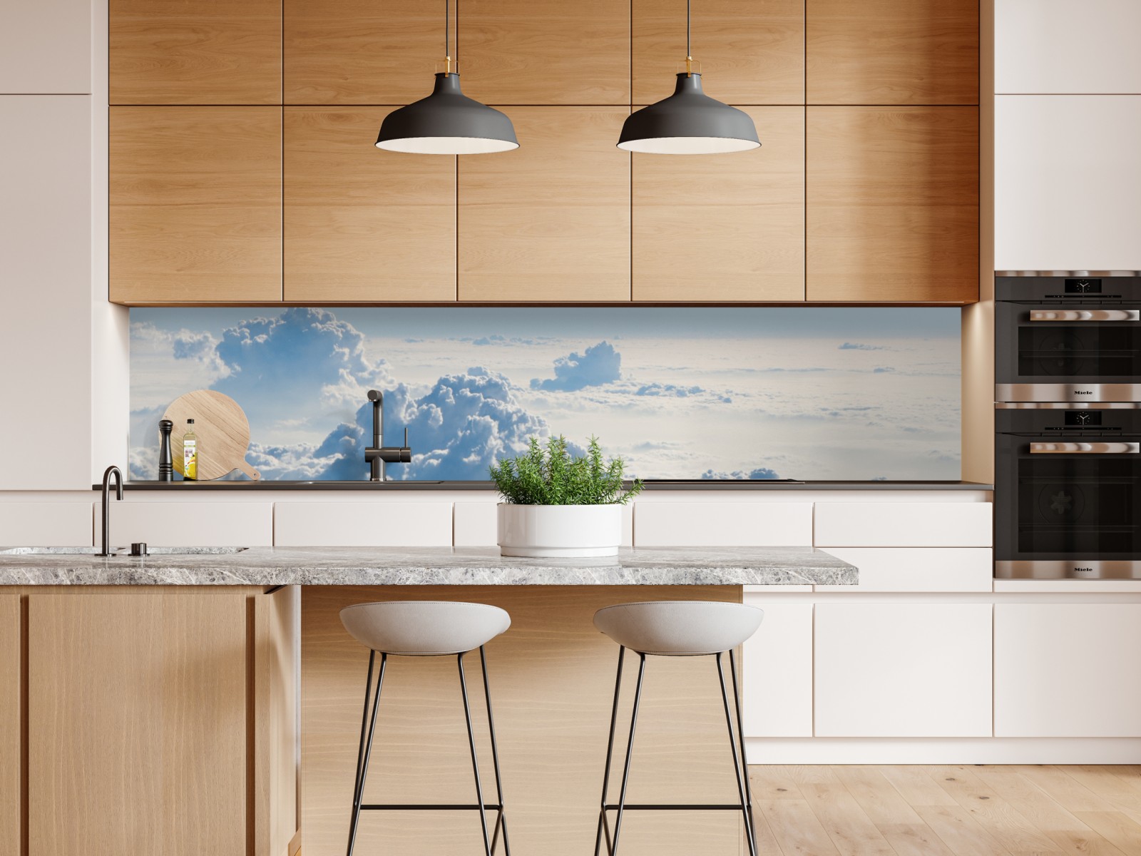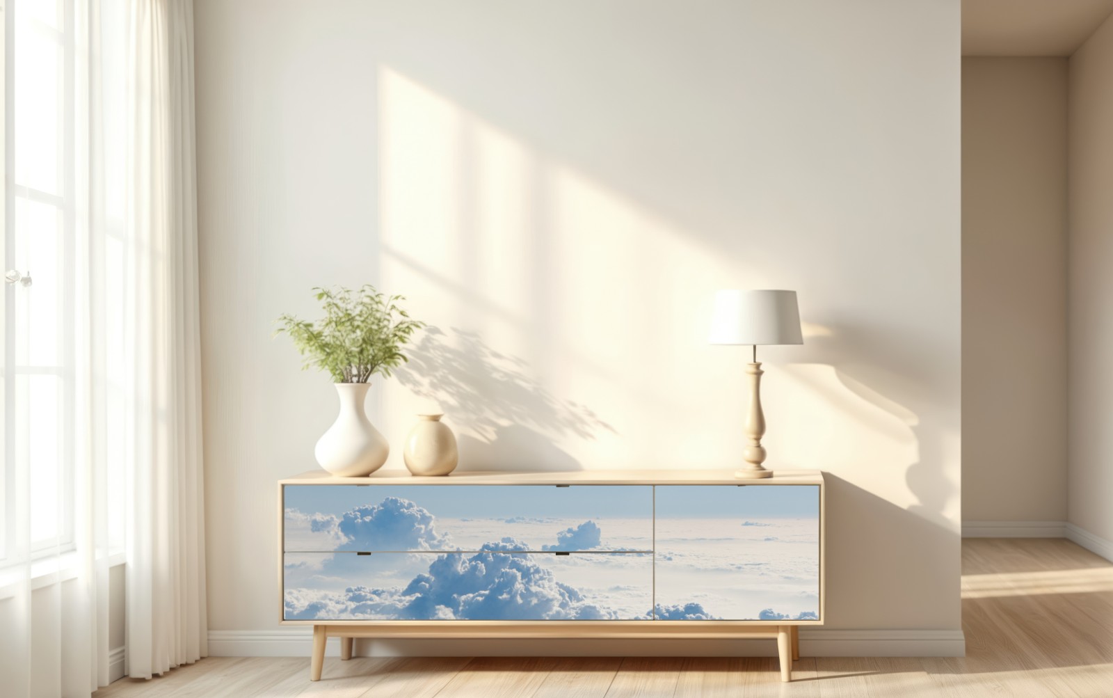 Repositionierbarer Aufkleber Luftige wolkenlandschaft im soften blau