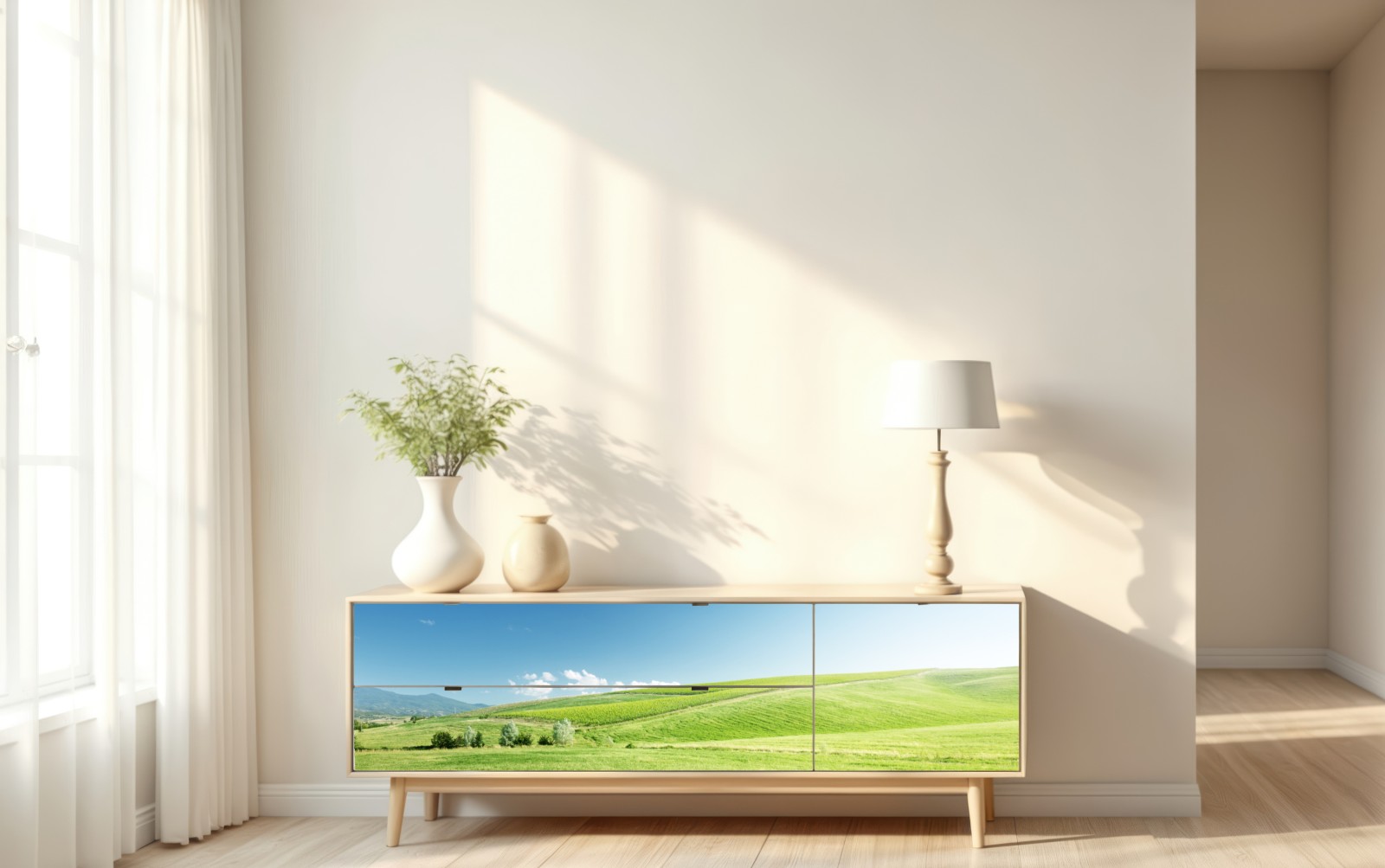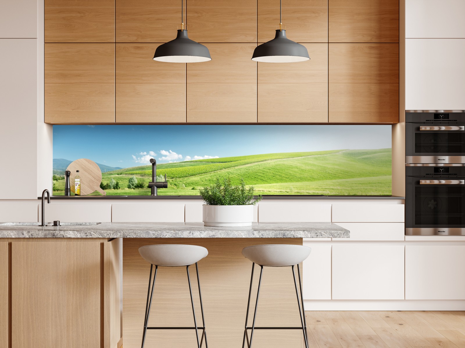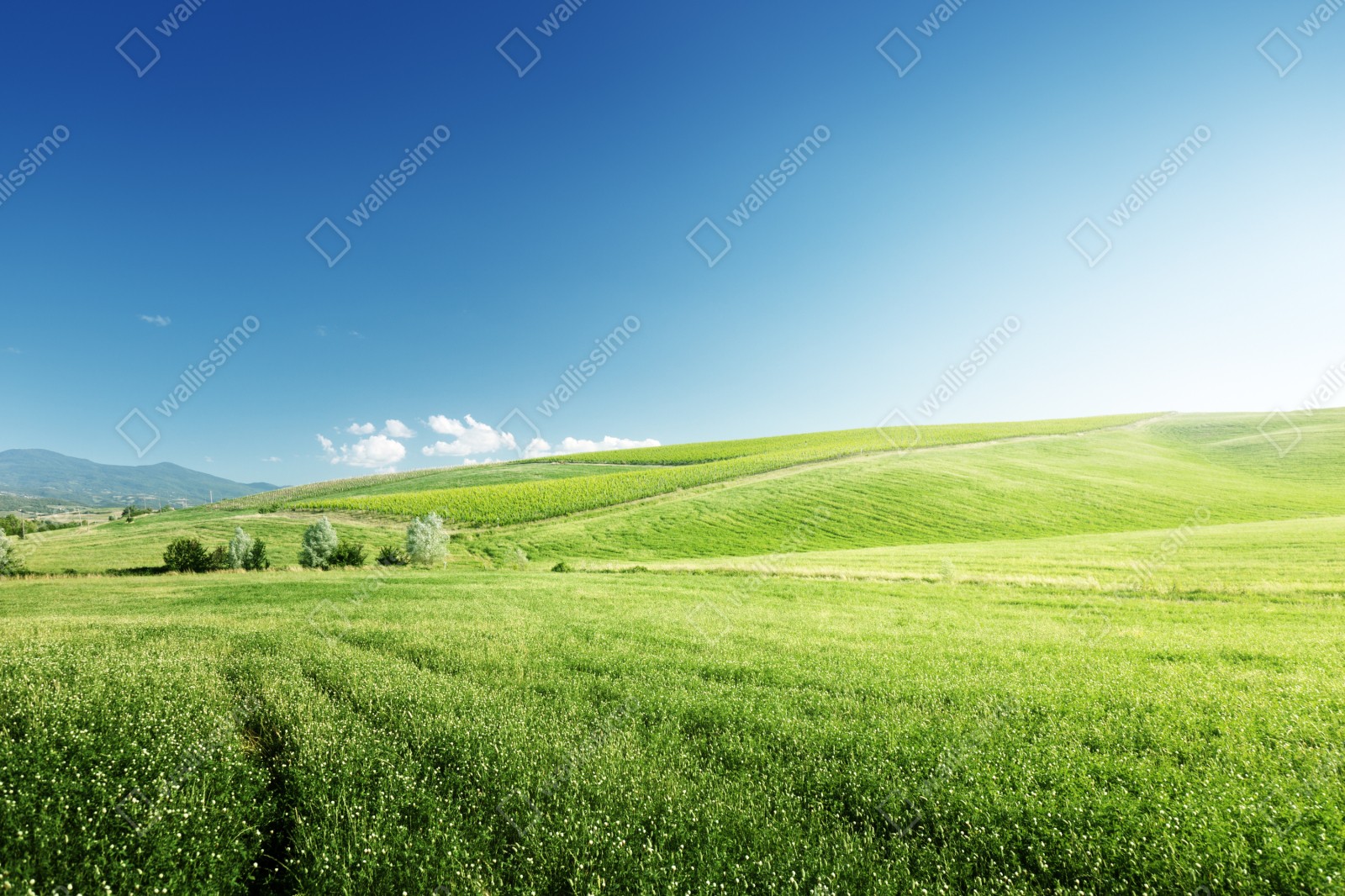 Repositionierbarer Aufkleber Ruhige grüne wiesenlandschaft