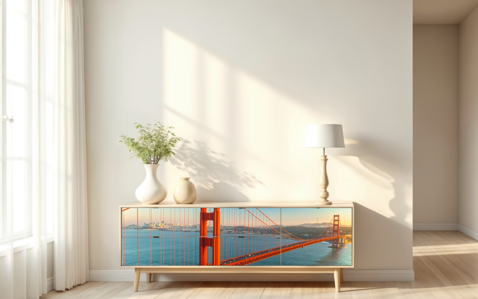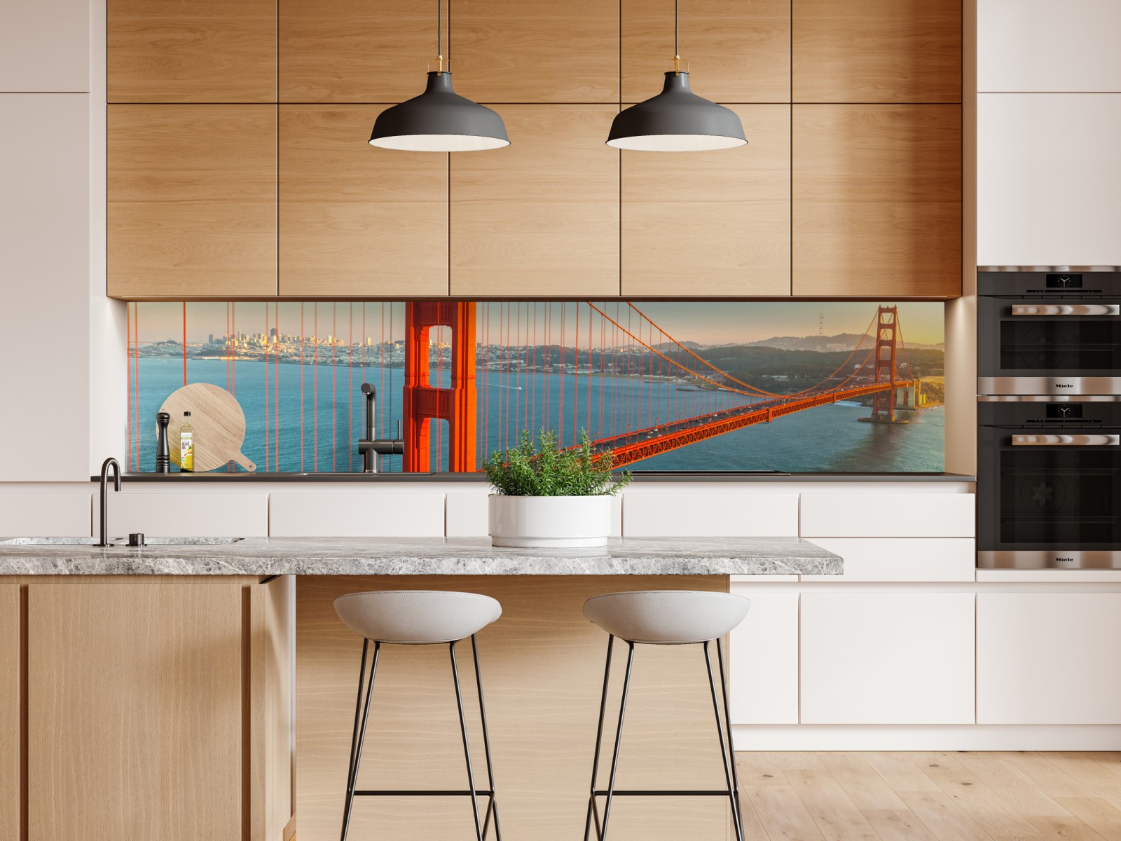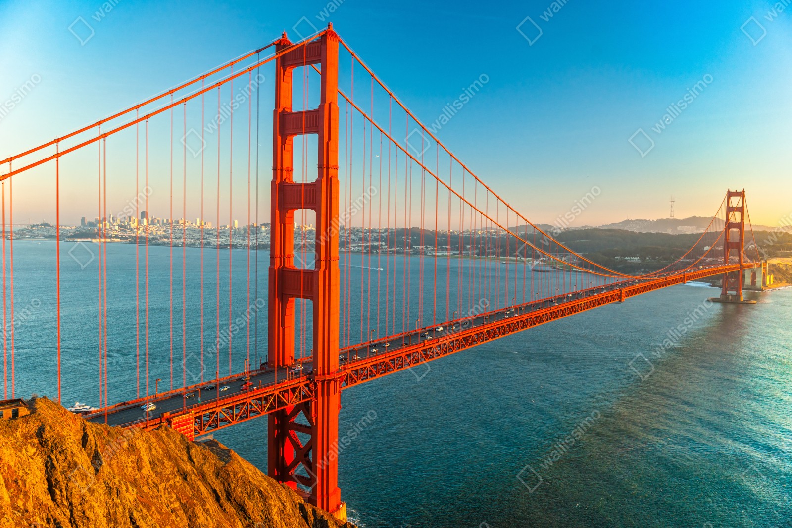 Repositionierbarer Aufkleber Golden Gate bei sonnenuntergang