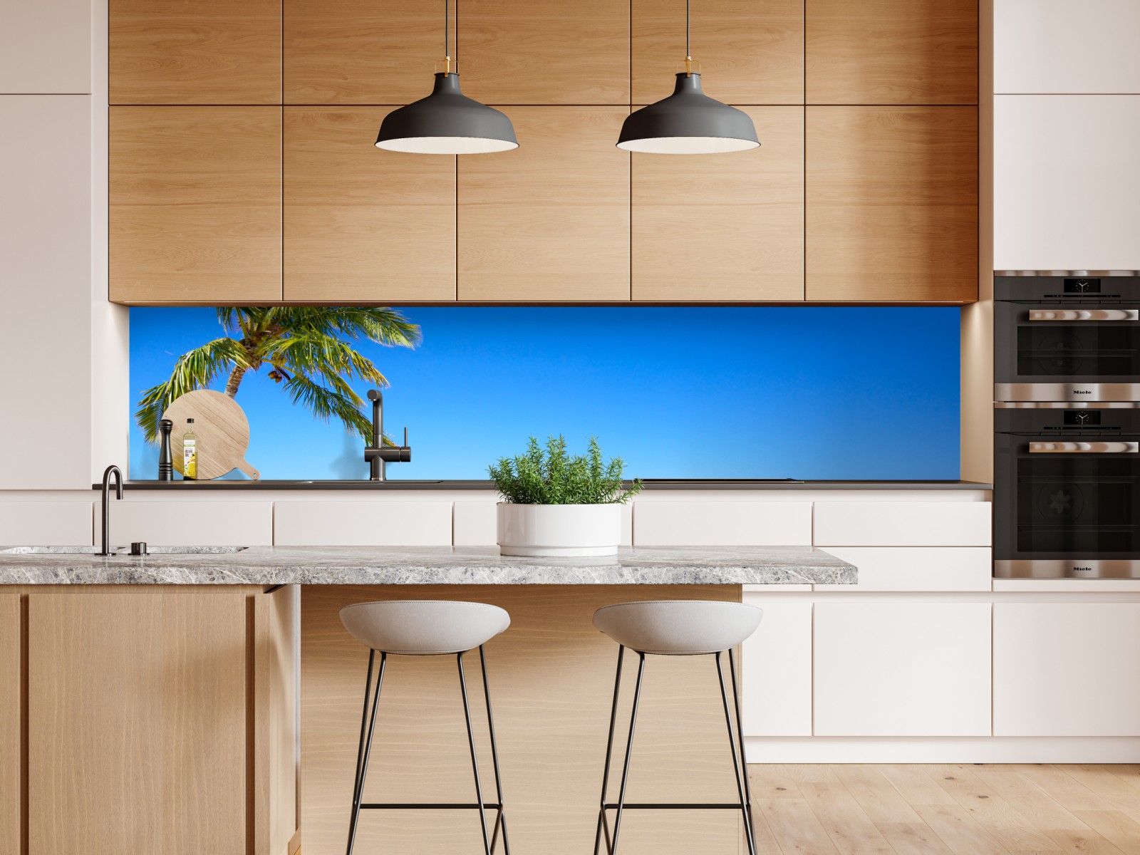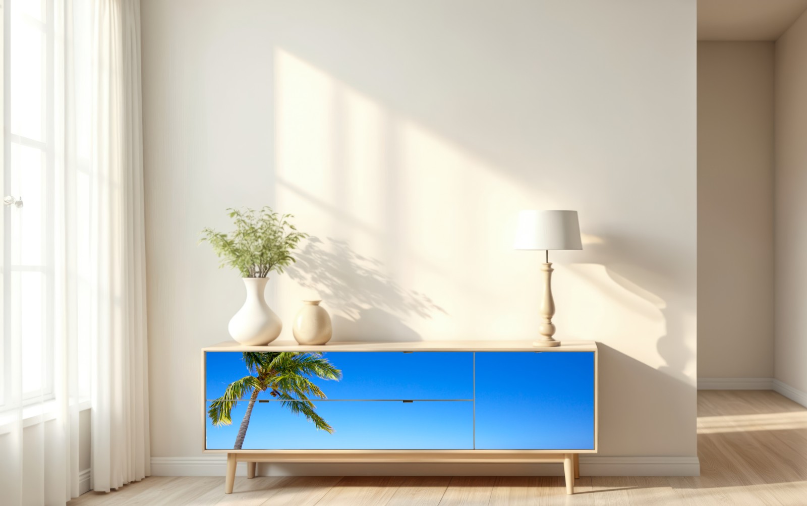Repositionierbarer Aufkleber Tropischer traumstrand mit palme