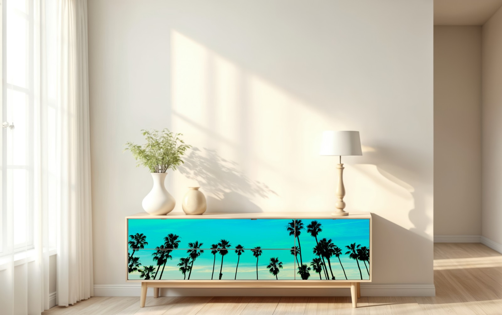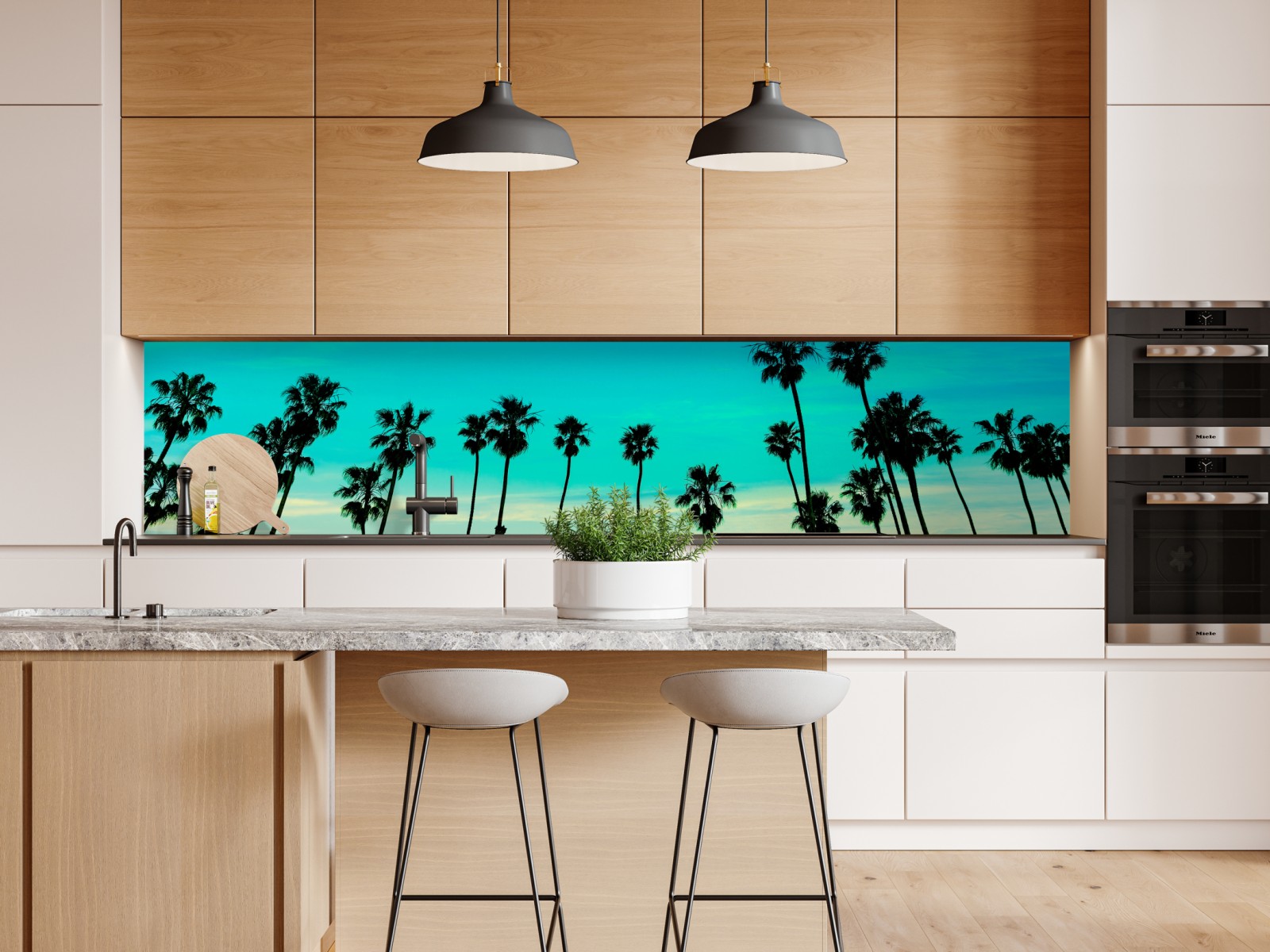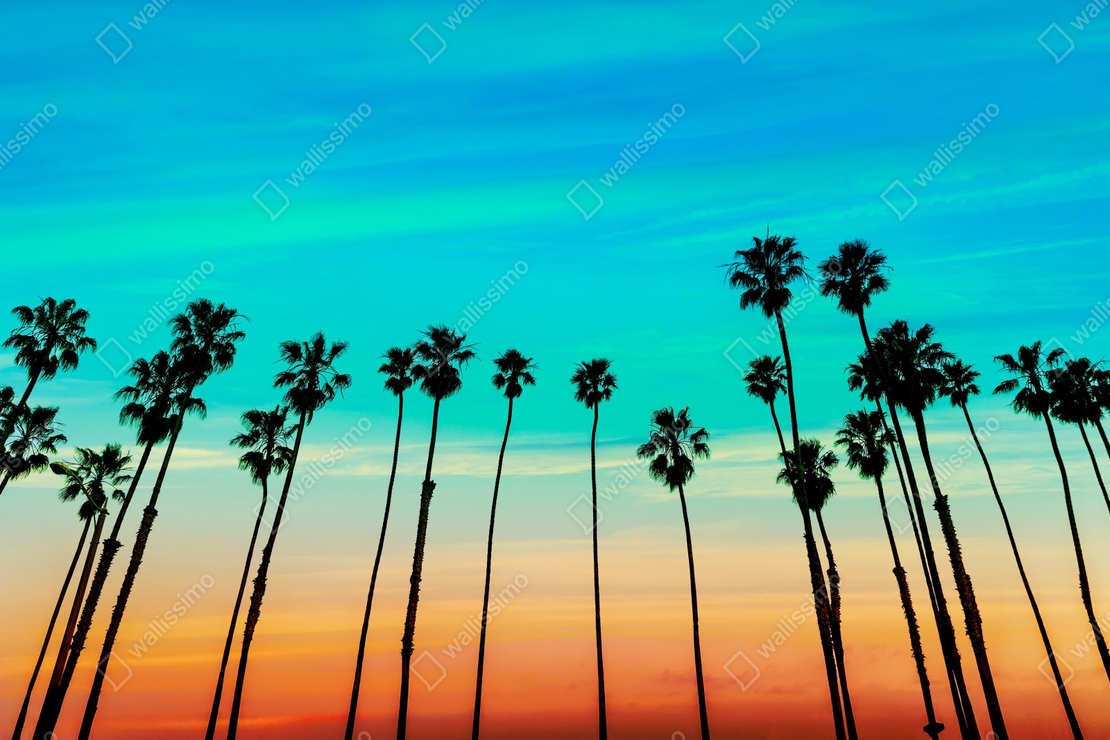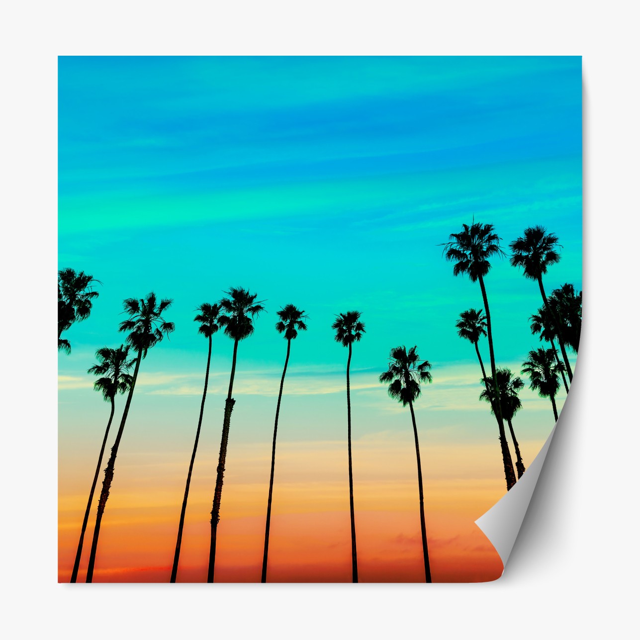 Repositionierbarer Aufkleber Palmen-silhouette bei sonnenuntergang in Kalifornien