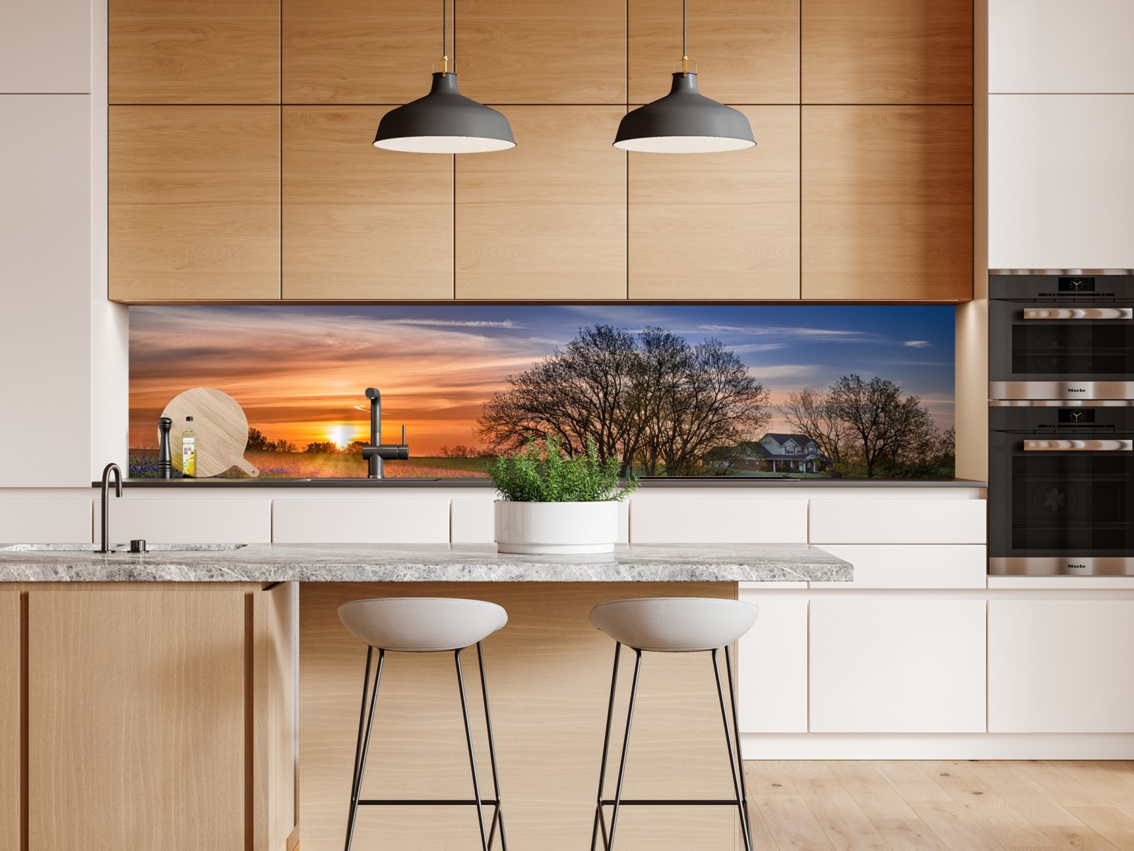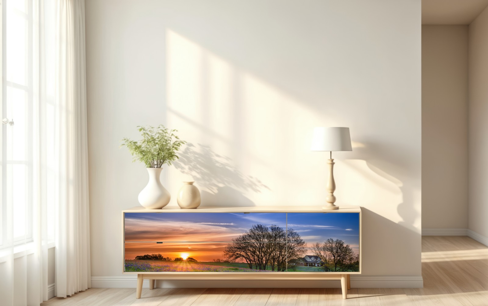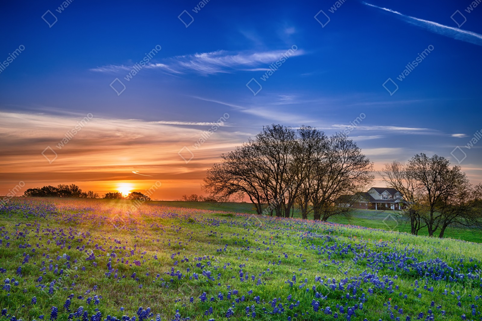 Repositionierbarer Aufkleber Texas wiese mit bluebonnets im sonnenaufgang