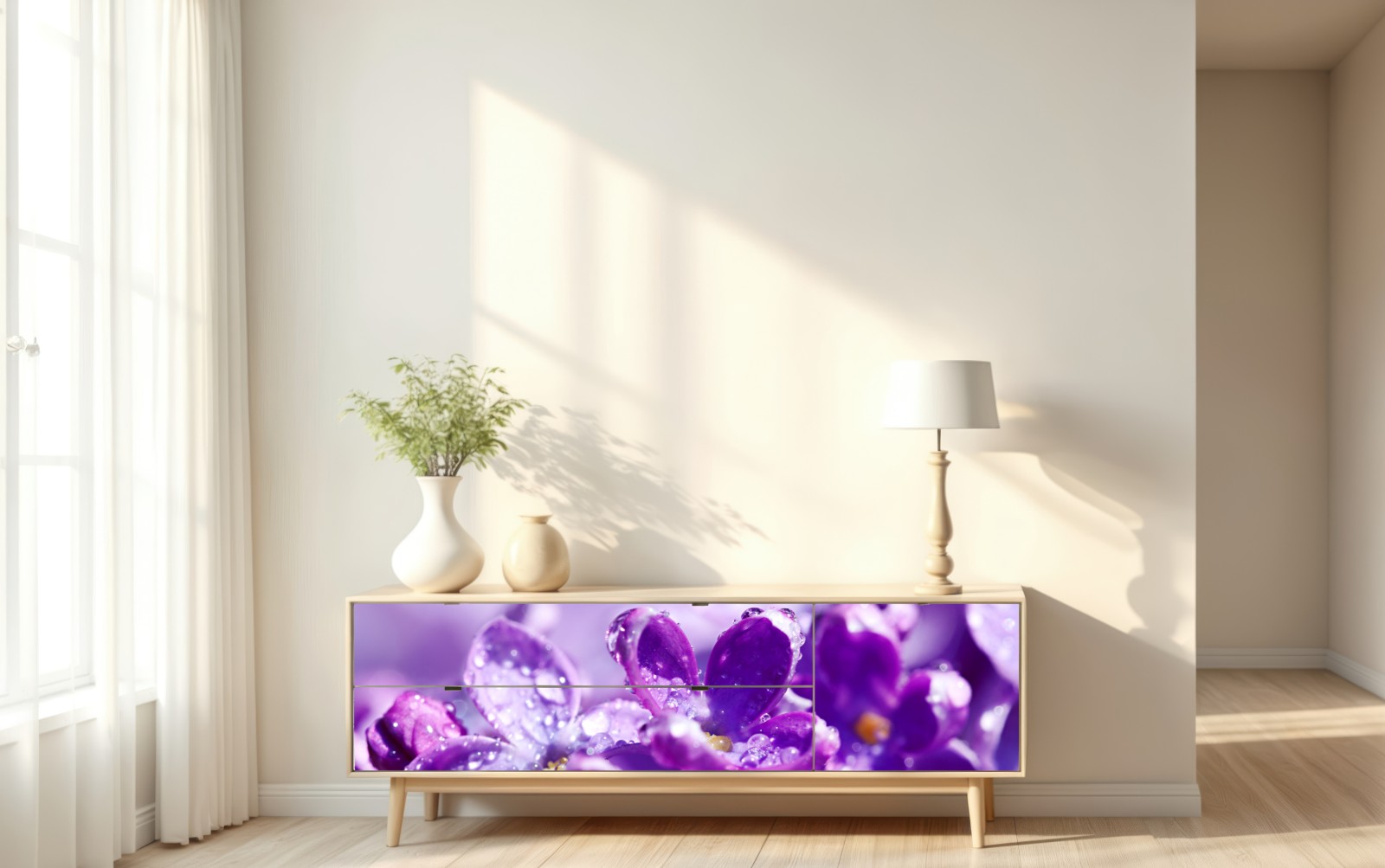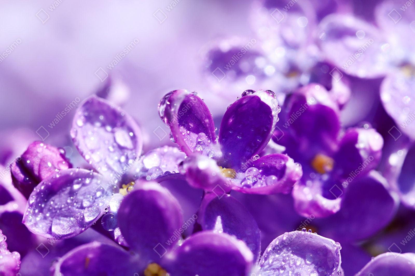 Repositionierbarer Aufkleber Lila fliederblüte mit tau