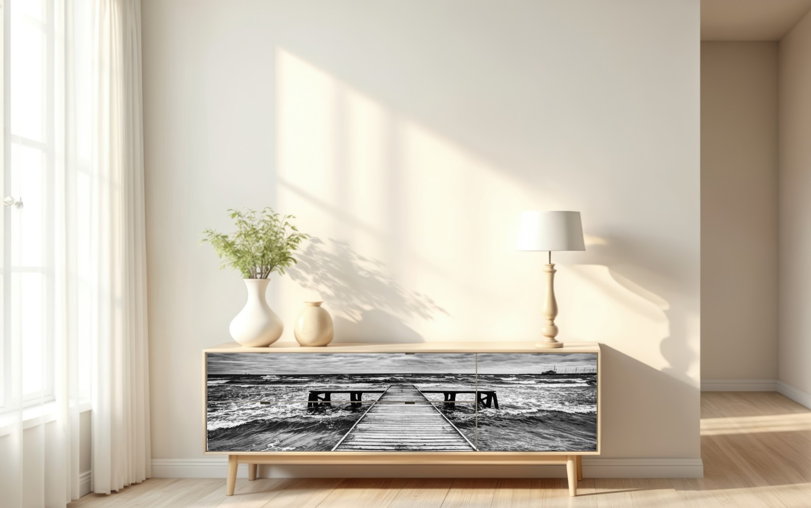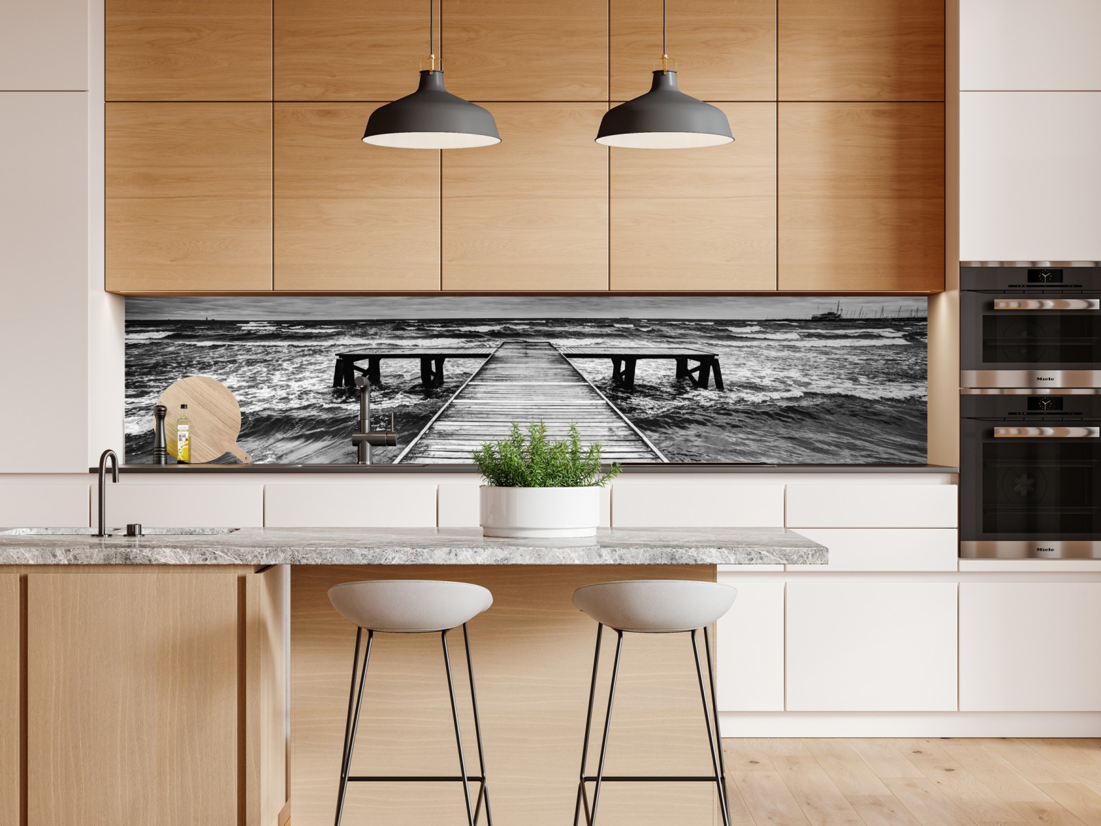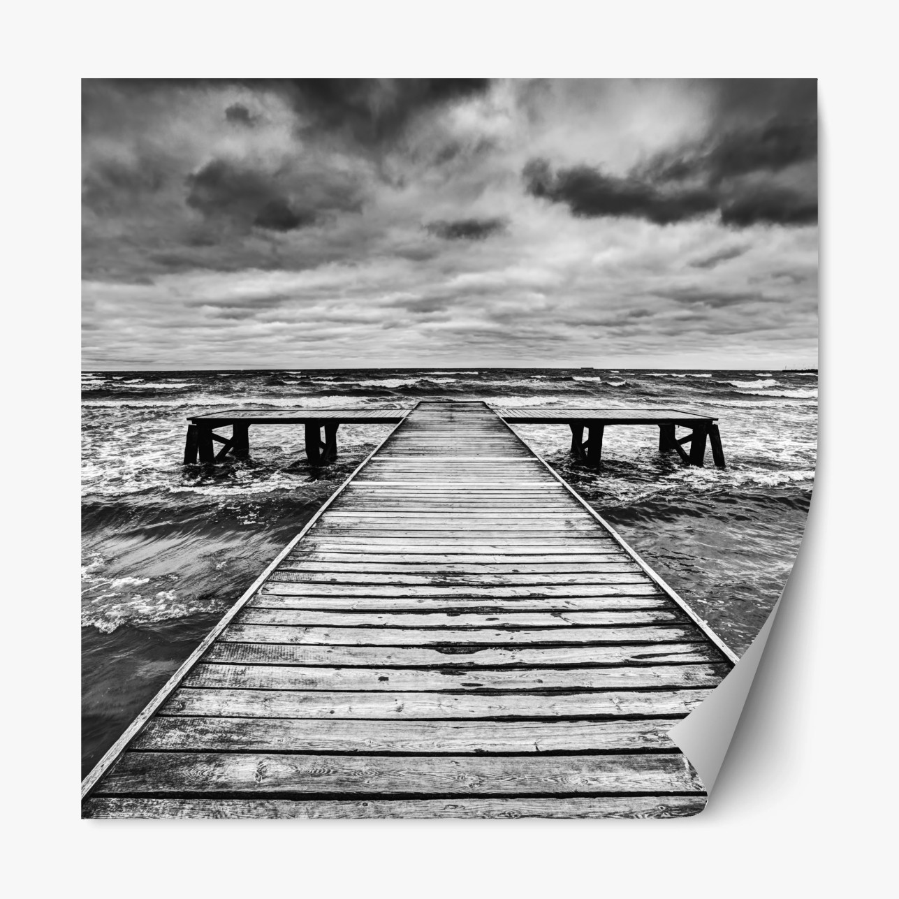 Repositionierbarer Aufkleber Dramatischer schwarzweiß-steg in stürmischer see
