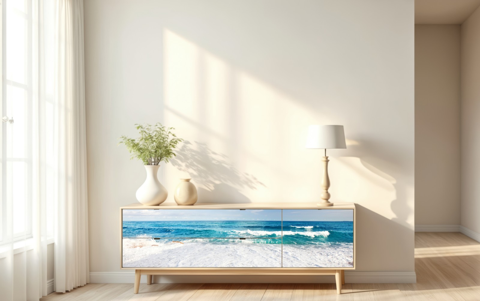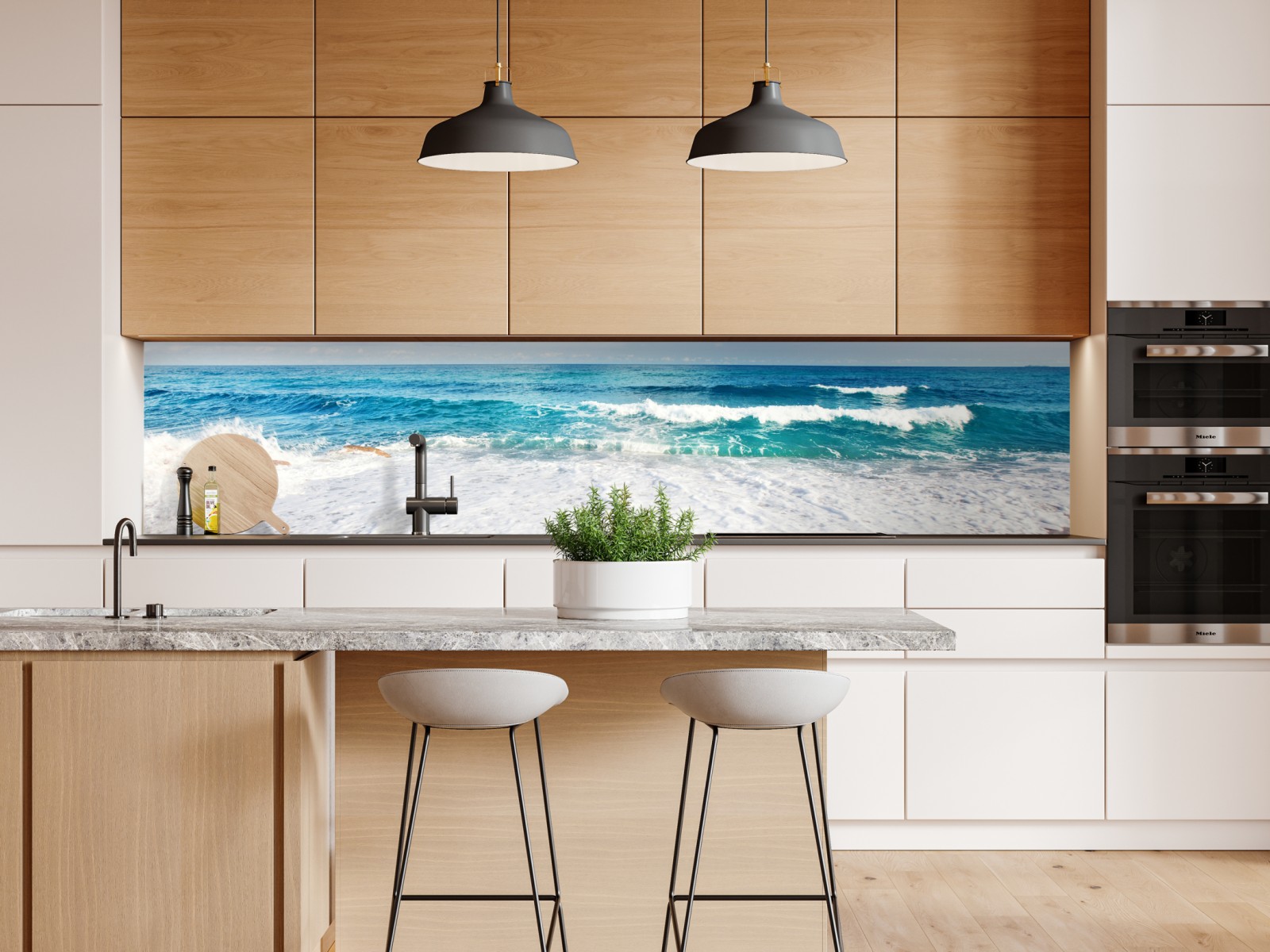 Repositionierbarer Aufkleber Türkisfarbene wellen am sandstrand