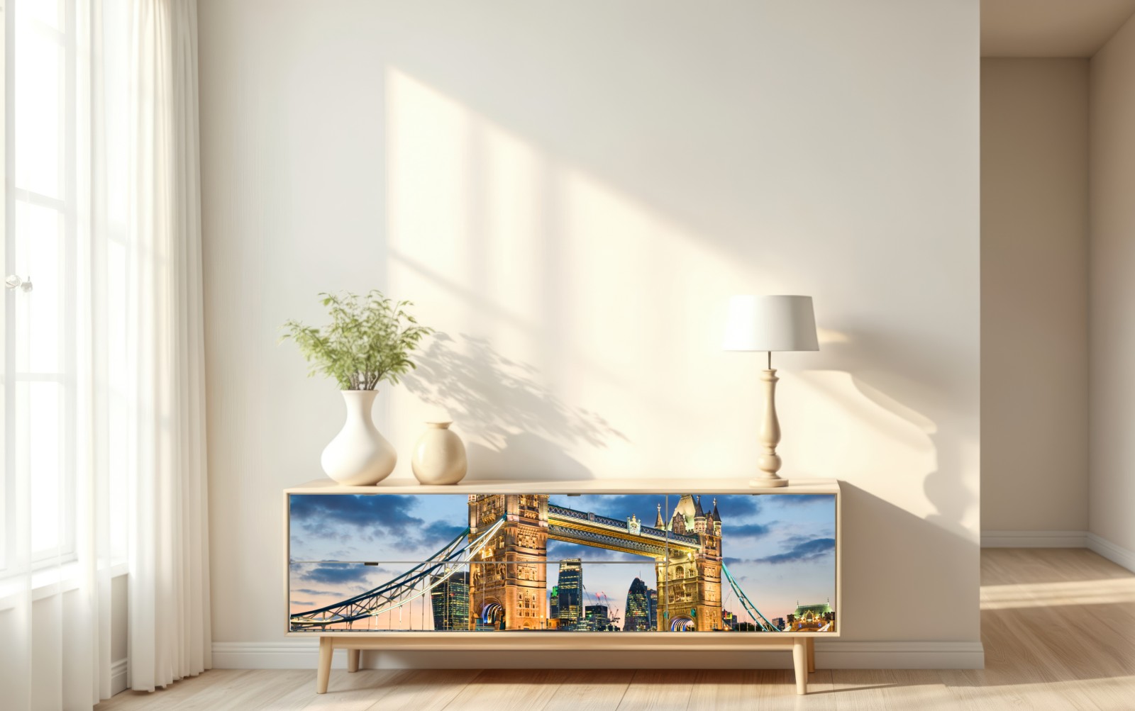 Repositionierbarer Aufkleber Tower Bridge bei dämmerung, London skyline