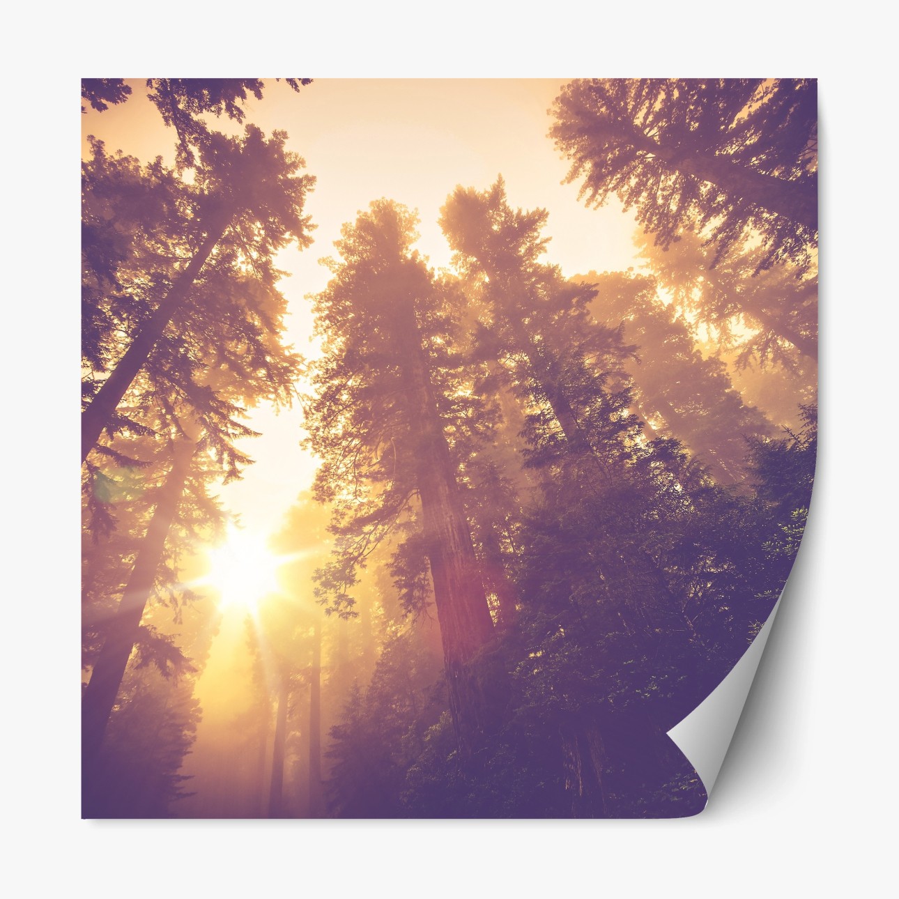 Repositionierbarer Aufkleber Nebeliger mamutbaumwald im goldenen vintagelicht
