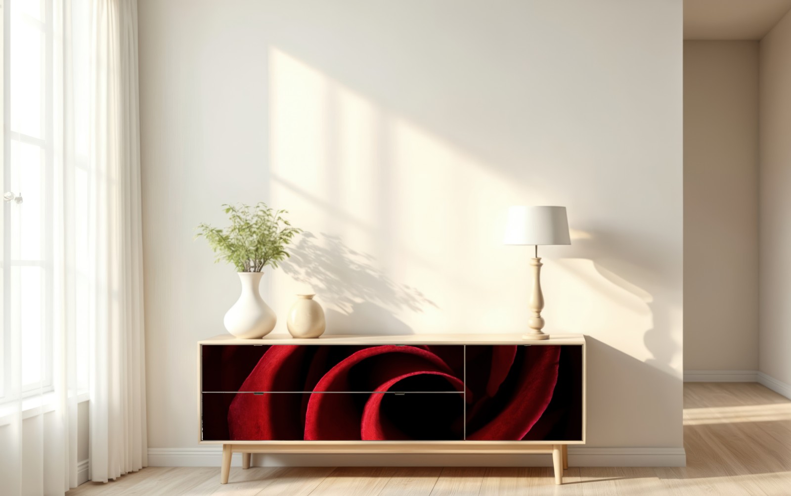 Repositionierbarer Aufkleber Spirale aus tiefroten rosenblättern