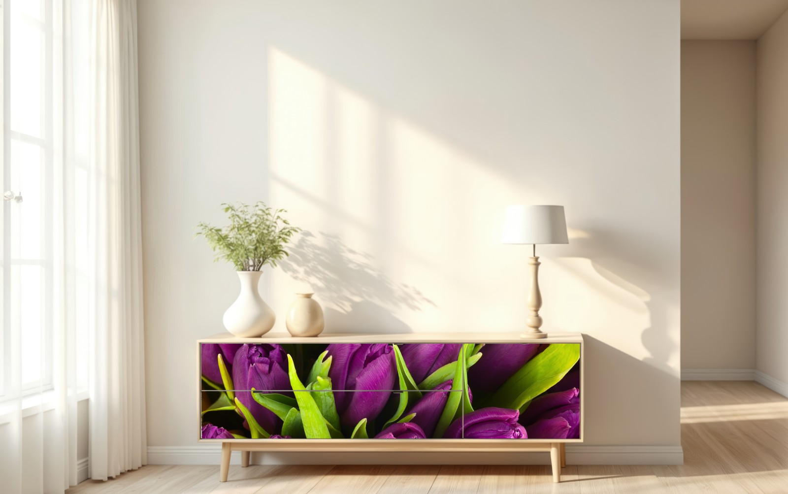 Repositionierbarer Aufkleber Lila tulpen im bukett