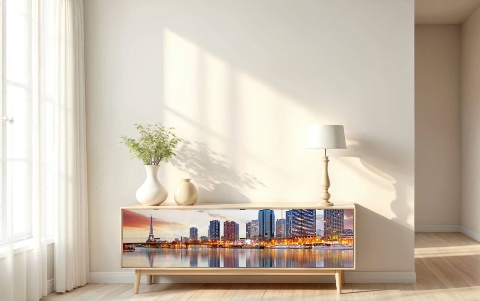 Repositionierbarer Aufkleber Paris skyline bei sonnenuntergang mit Eiffelturm
