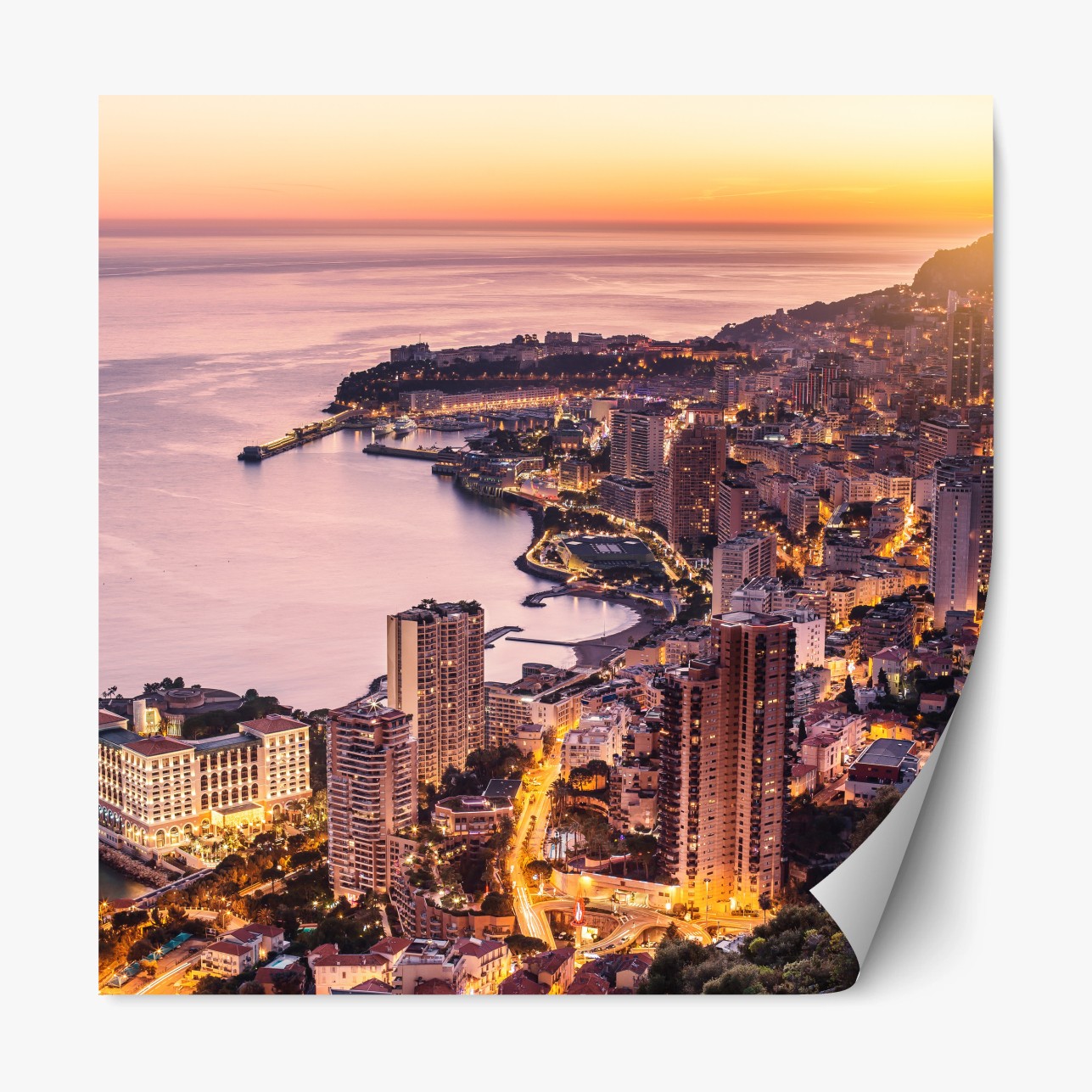 Repositionierbarer Aufkleber Sonnenuntergang über der städtischen küstenlinie