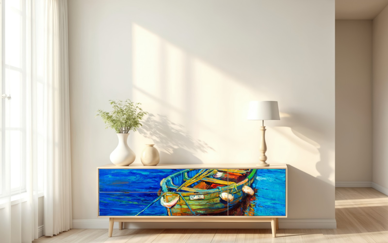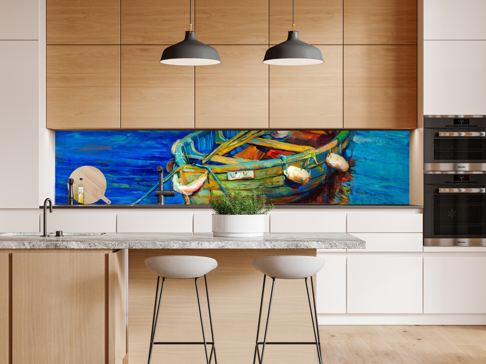 Repositionierbarer Aufkleber Lebendiges boot bei sonnenuntergang