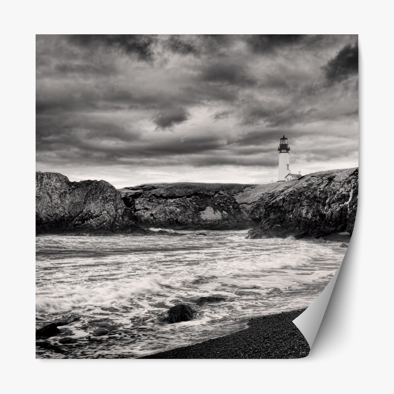 Repositionierbarer Aufkleber Leuchtturm Yaquina Bay an stürmischer küste