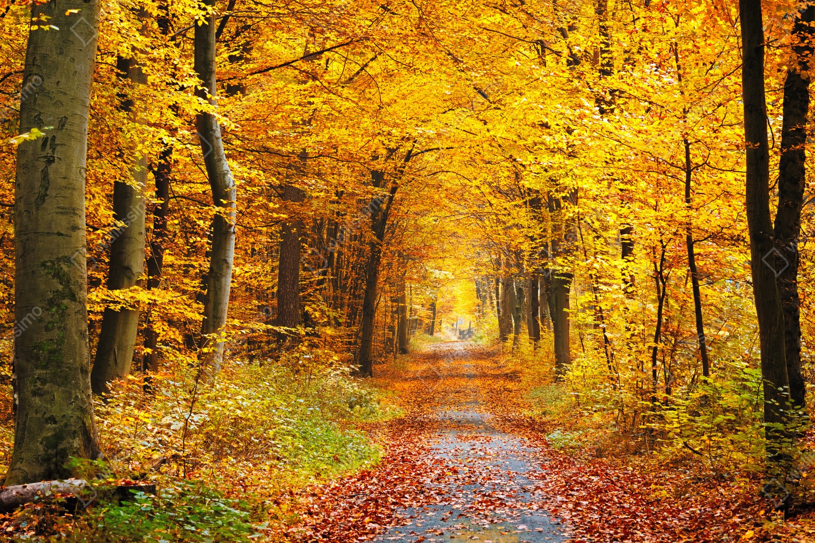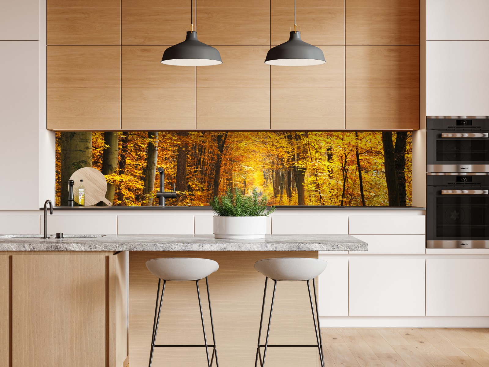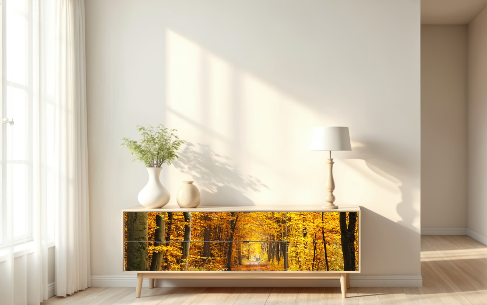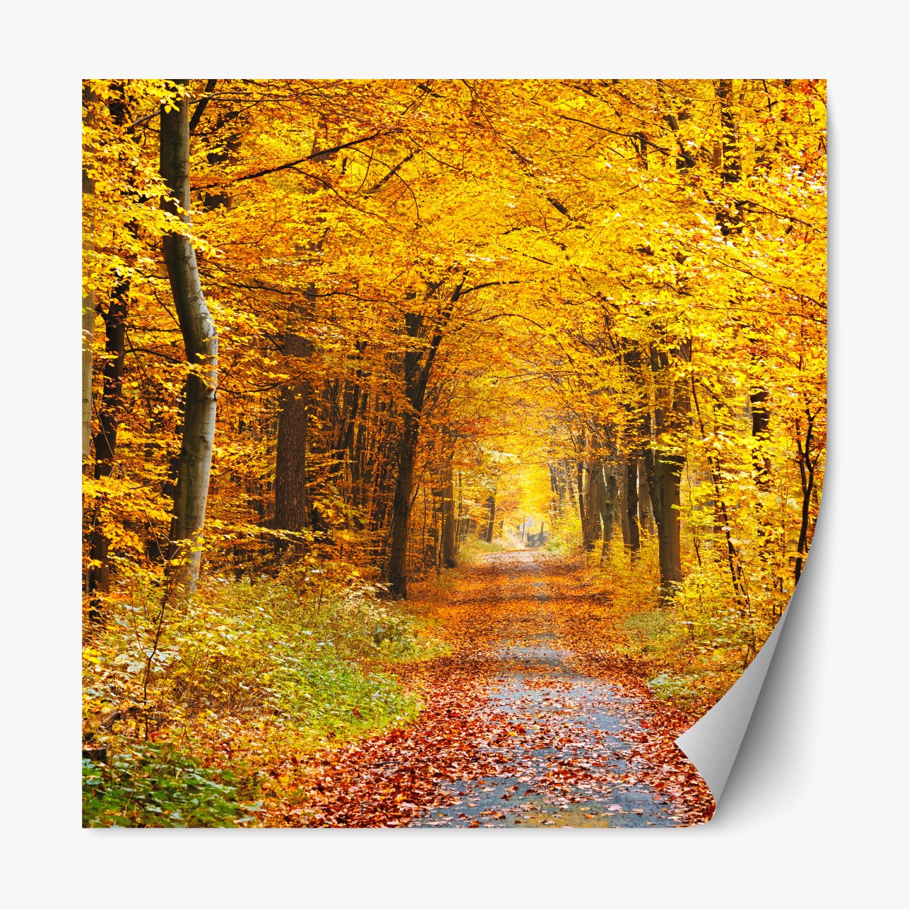 Repositionierbarer Aufkleber Goldener herbstwald pfad