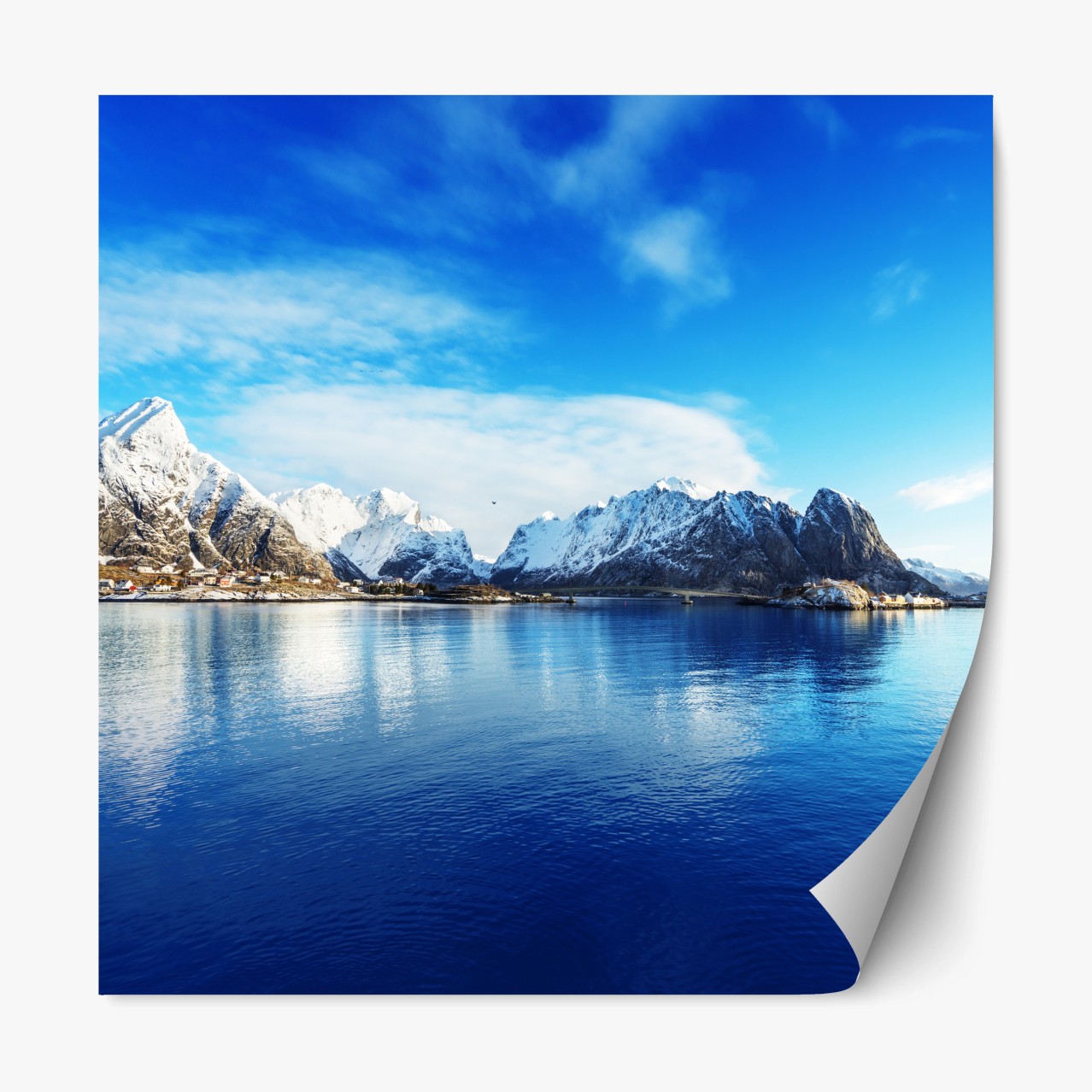 Repositionierbarer Aufkleber Ruhige winterliche fjordlandschaft in Reine, Lofoten