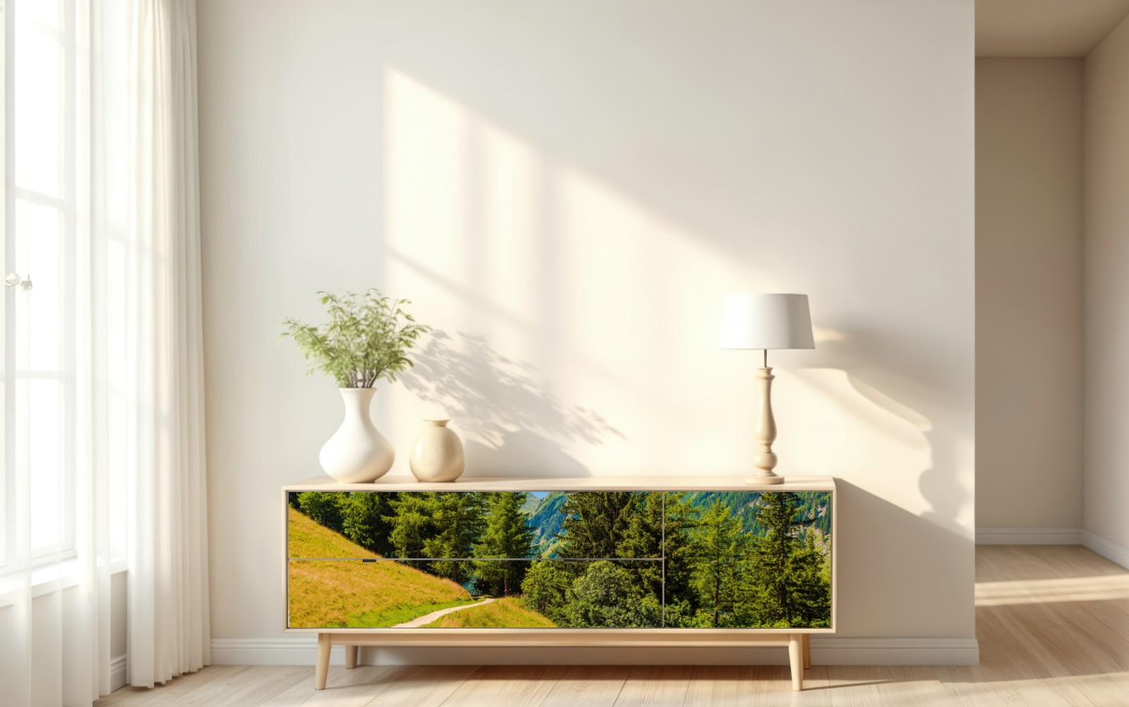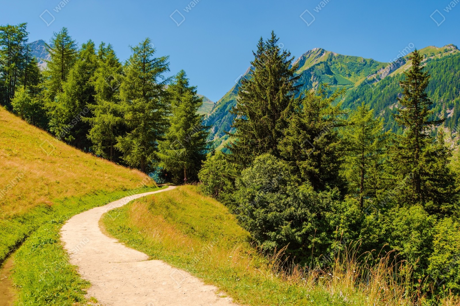 Repositionierbarer Aufkleber Bergweg in den Schweizer Alpen im Sommer