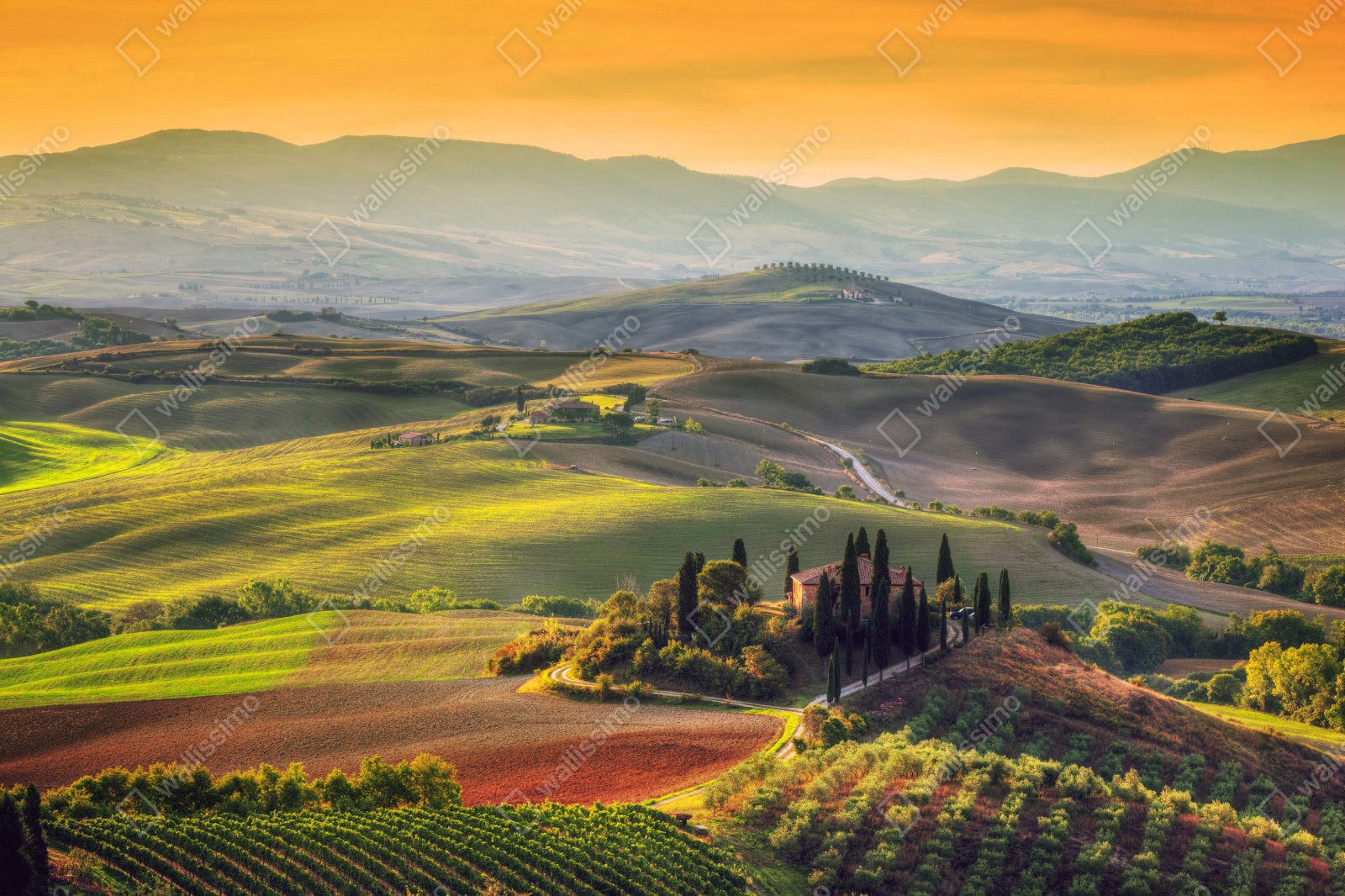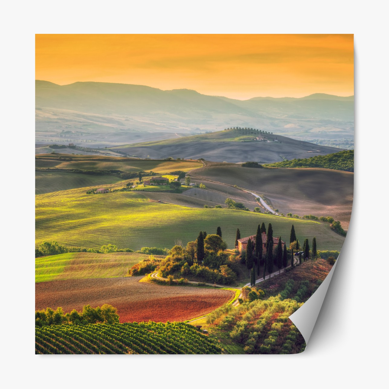 Repositionierbarer Aufkleber Toskana friedliche hügel im abendlicht