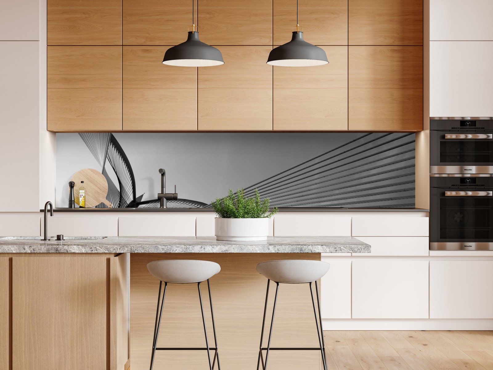 Repositionierbarer Aufkleber Monochrome brücke mit geometrischen linien