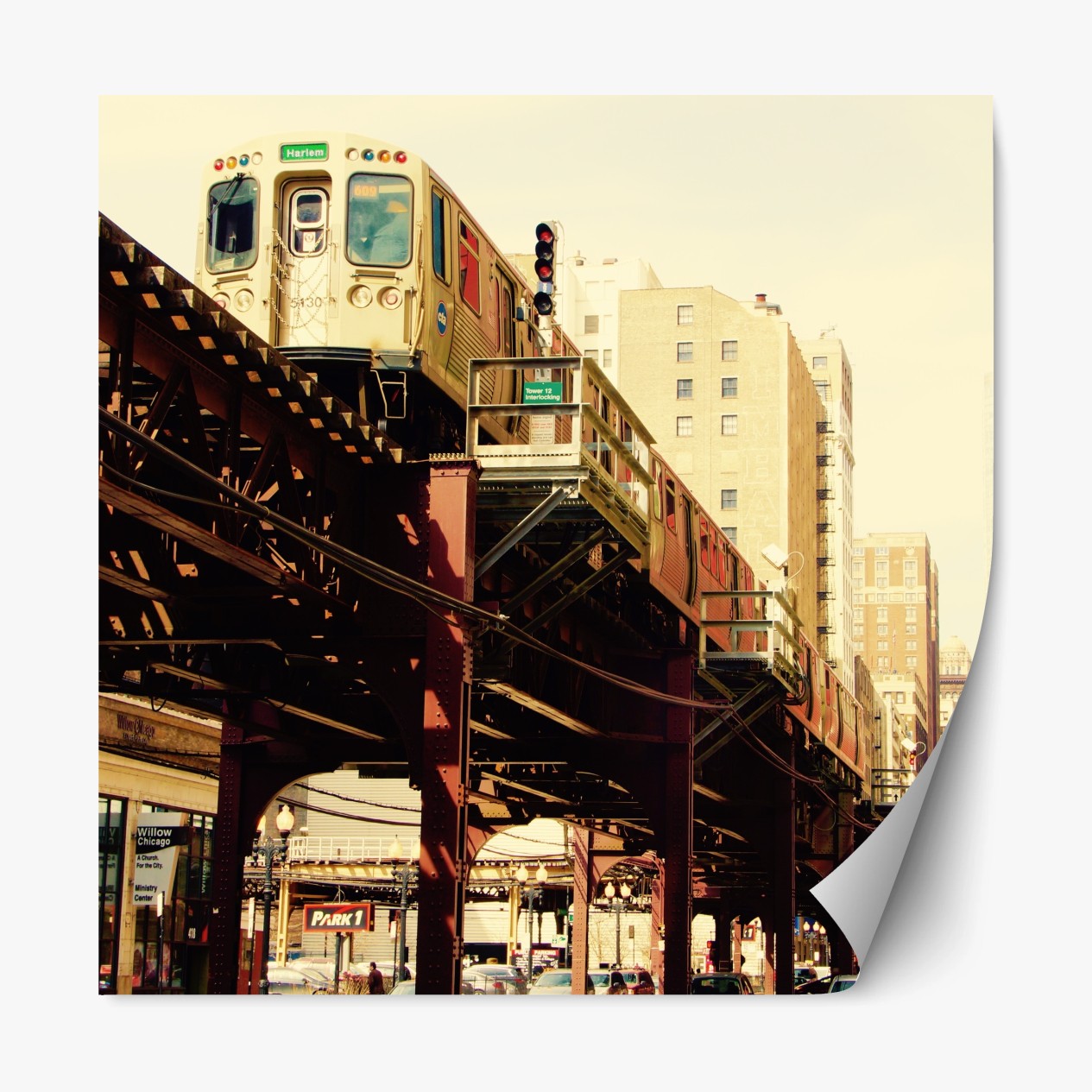 Repositionierbarer Aufkleber Retro hochbahn über der stadtstraße