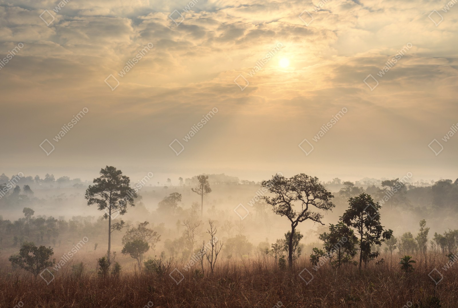Repositionierbarer Aufkleber Thailand sawanne bei sonnenaufgang