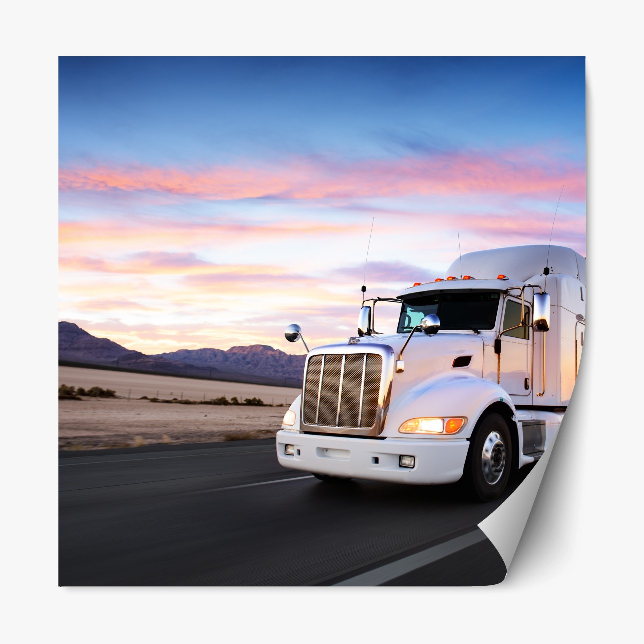 Repositionierbarer Aufkleber Lastwagen bei sonnenuntergang auf der autobahn