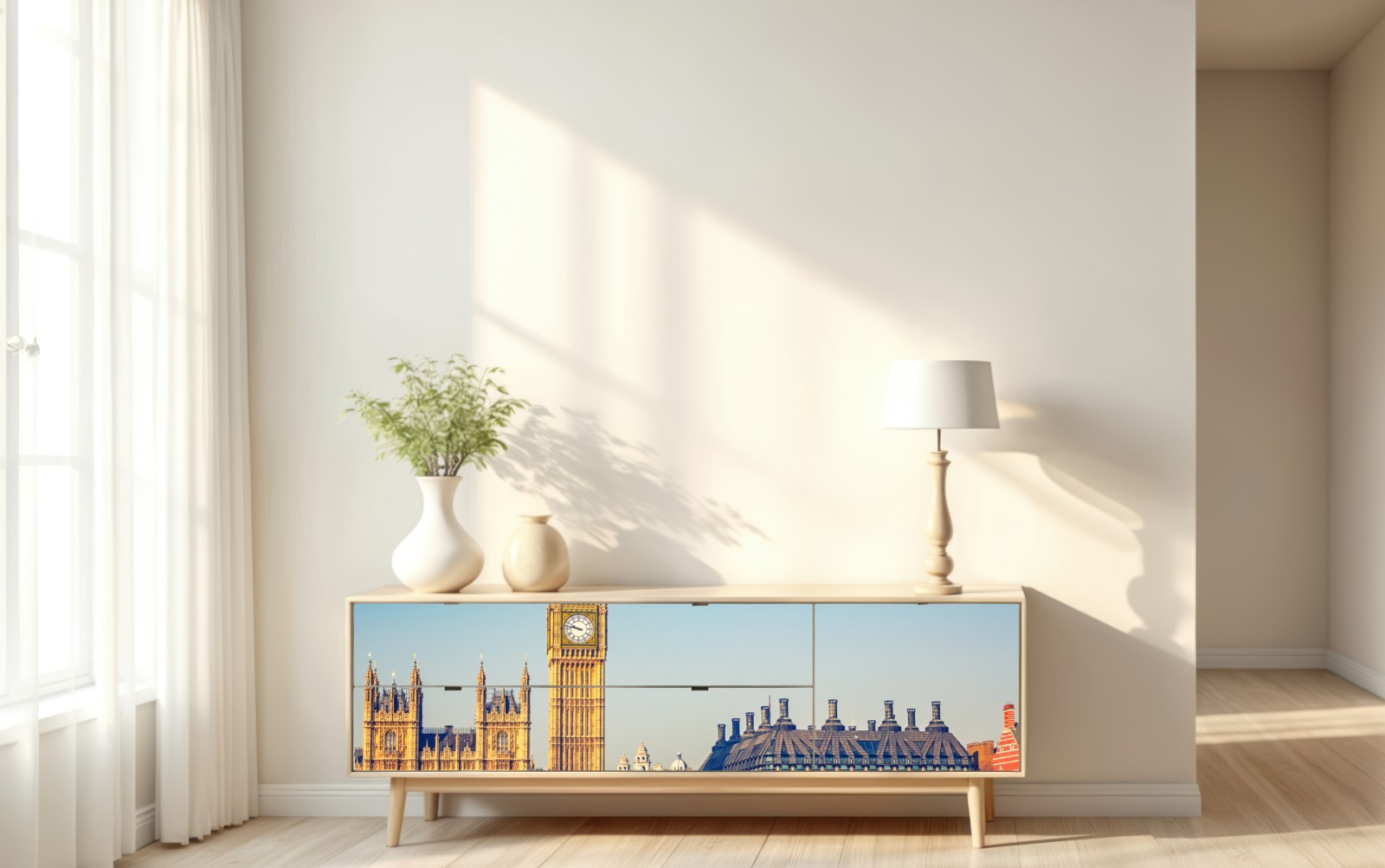 Repositionierbarer Aufkleber London mit Big Ben und Westminster Bridge