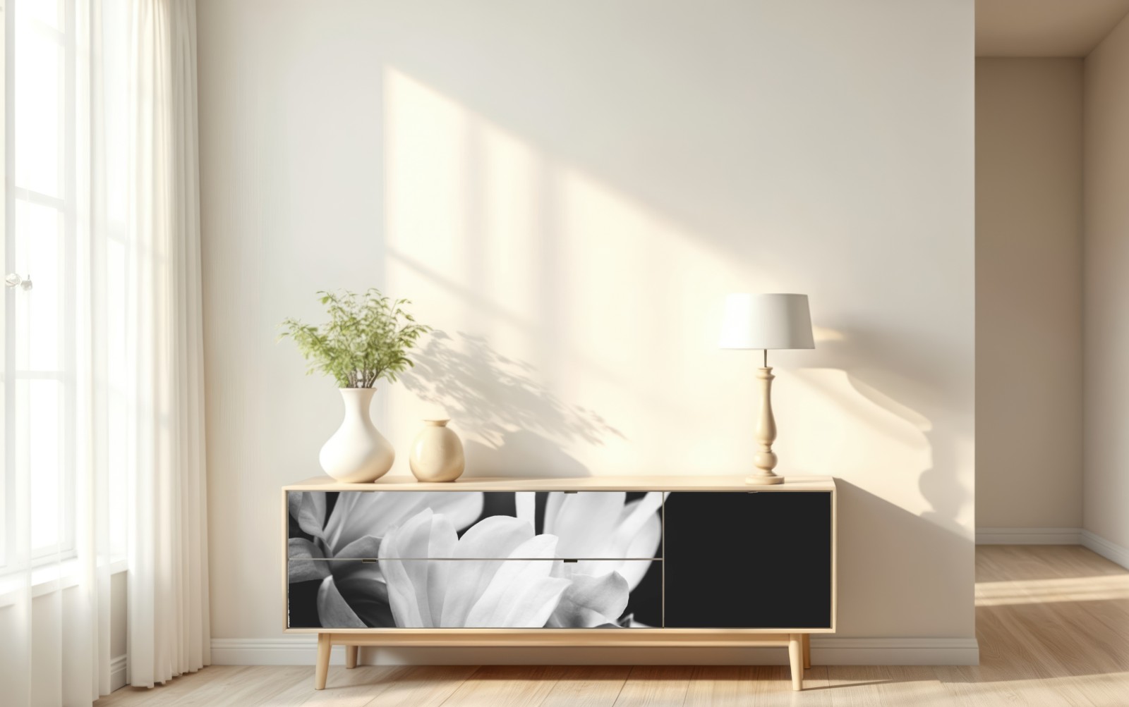 Repositionierbarer Aufkleber Schwarzweiß magnolienblüte nahaufnahme