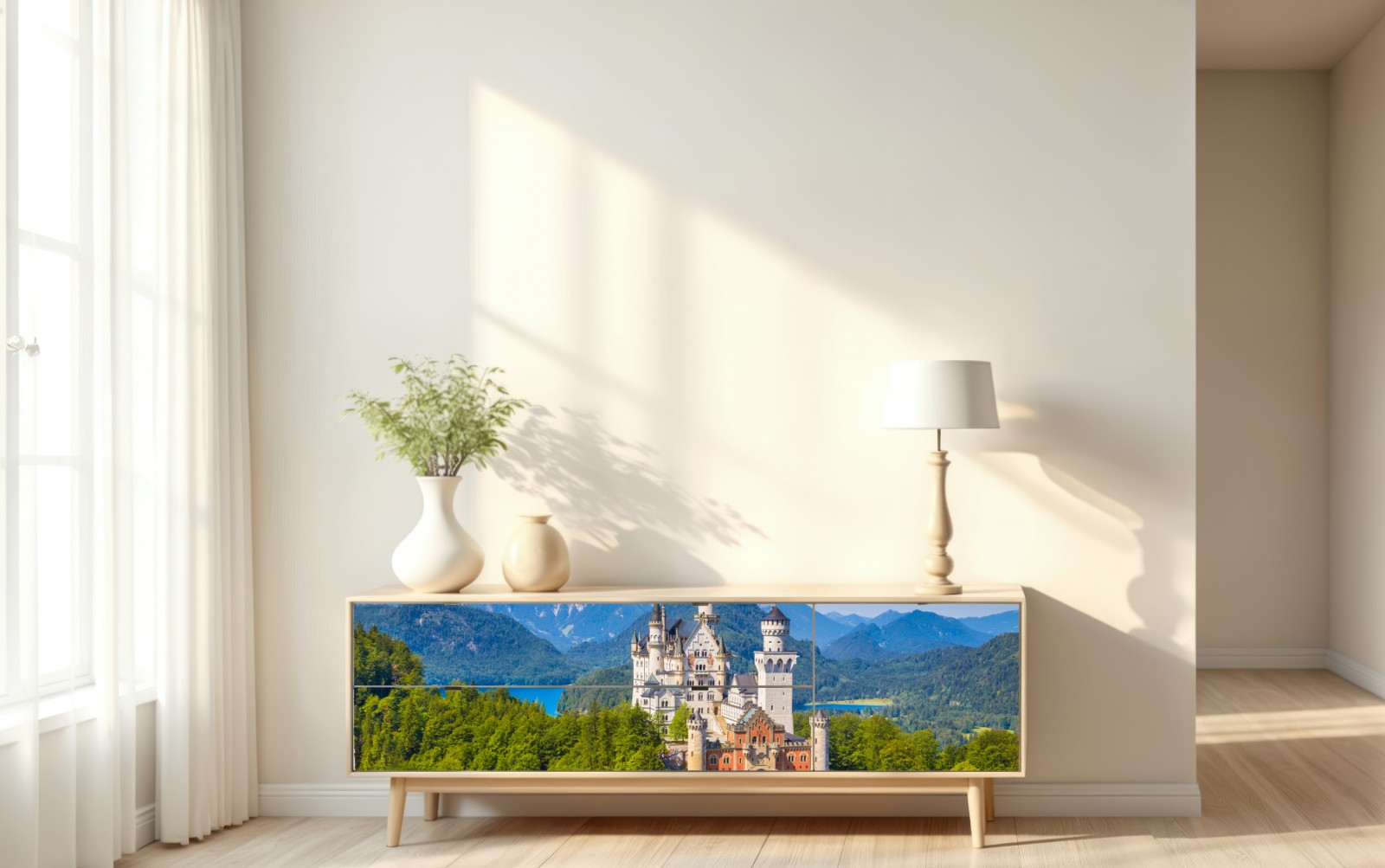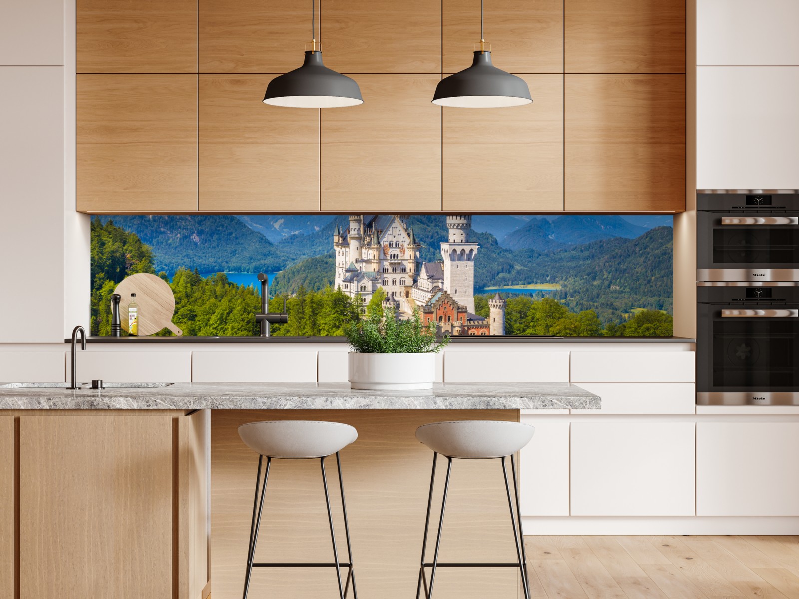 Repositionierbarer Aufkleber Schloss Neuschwanstein in alpiner landschaft