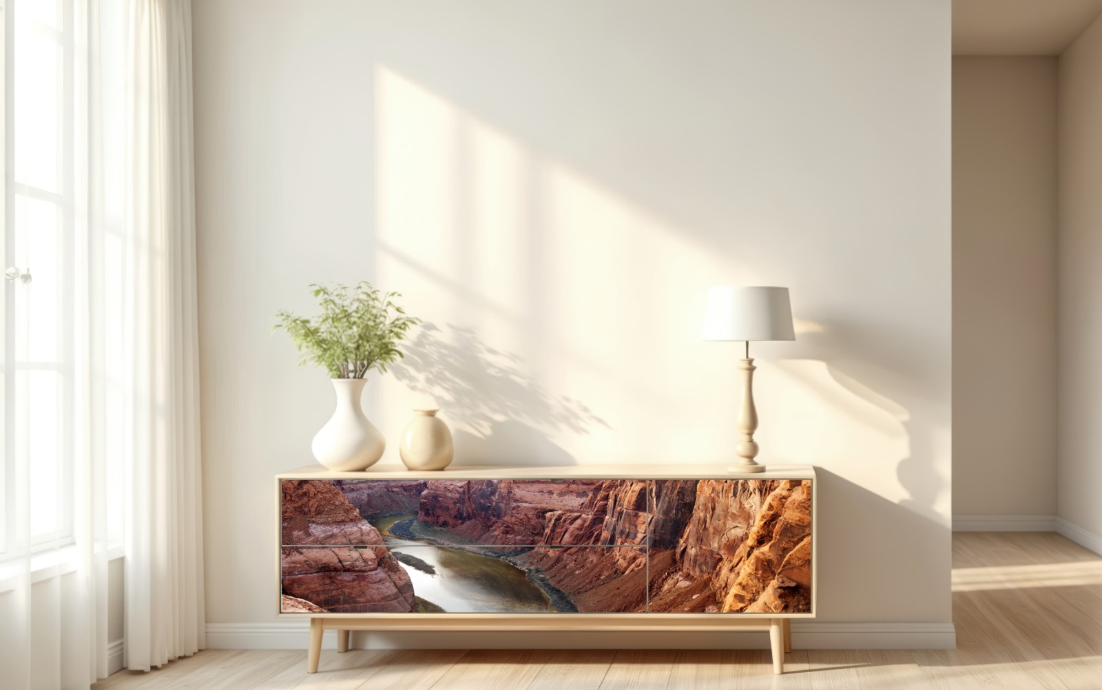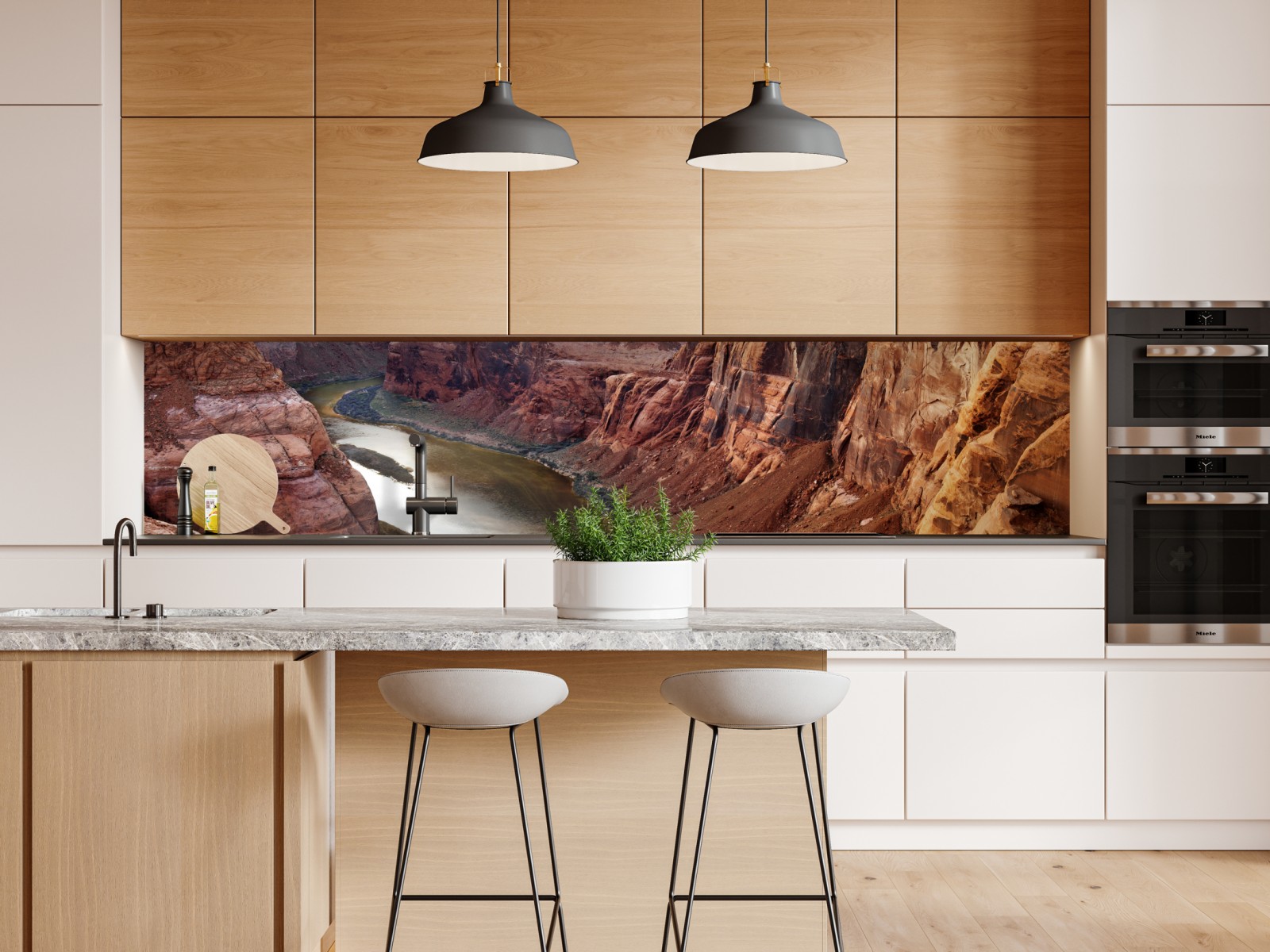 Repositionierbarer Aufkleber Sonnenbeschienener canyon bei Horseshoe Bend, Colorado River