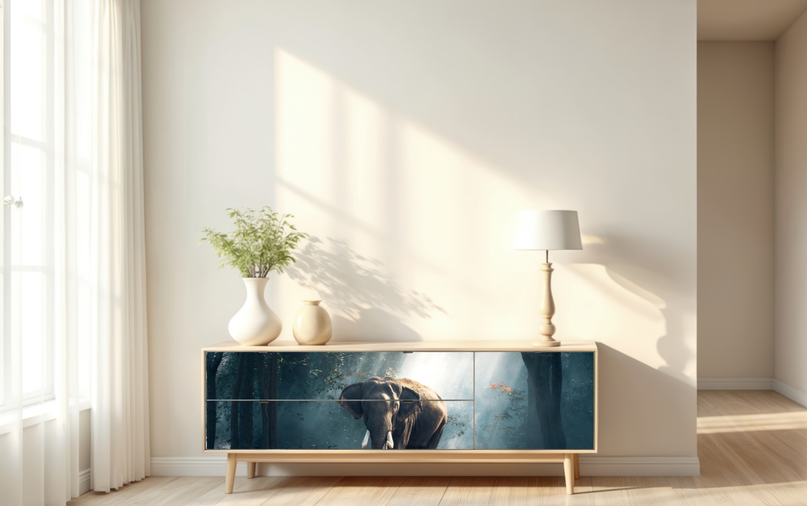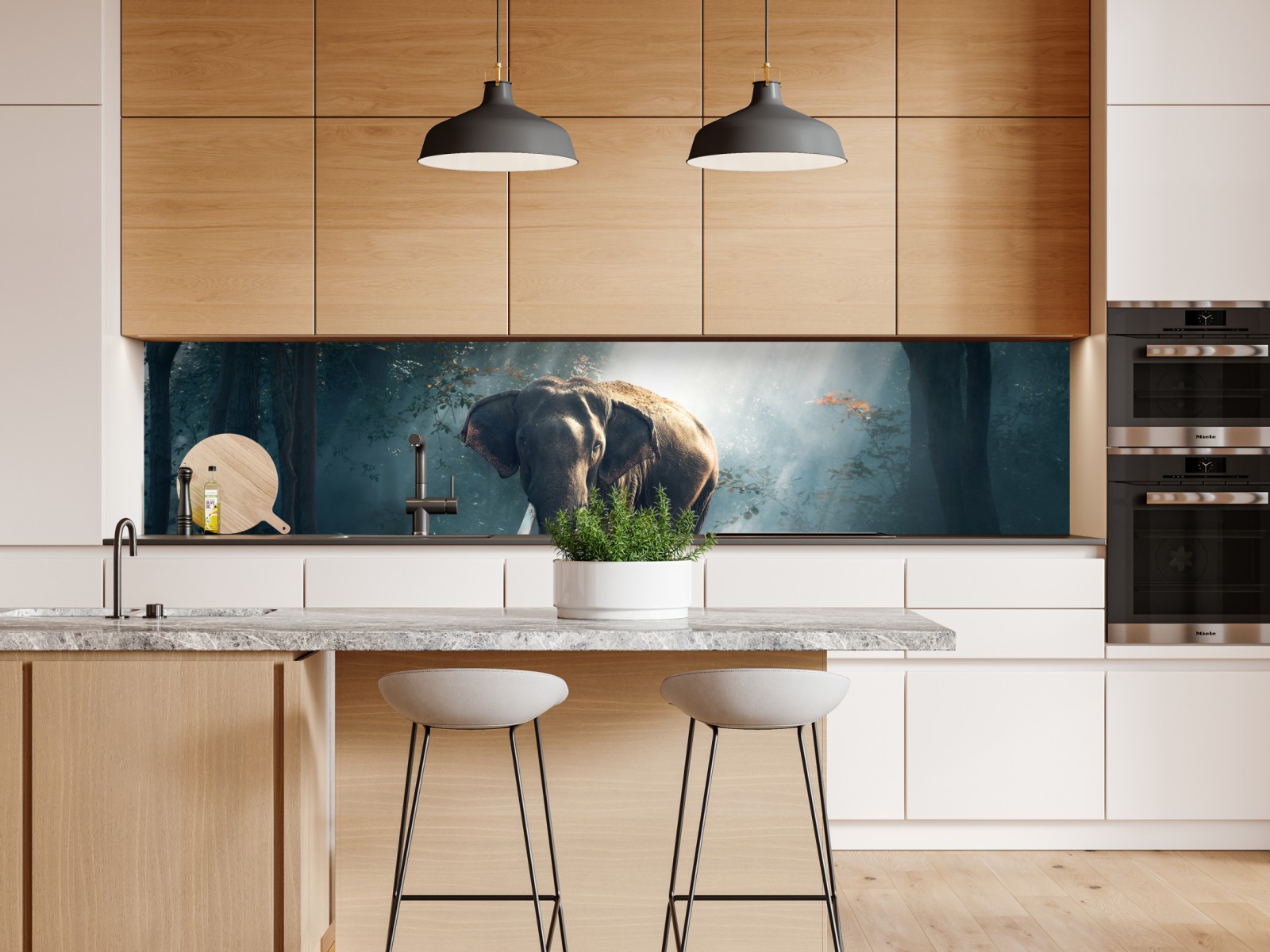 Repositionierbarer Aufkleber Majestätischer elefant im sonnenlichtdurchfluteten wald