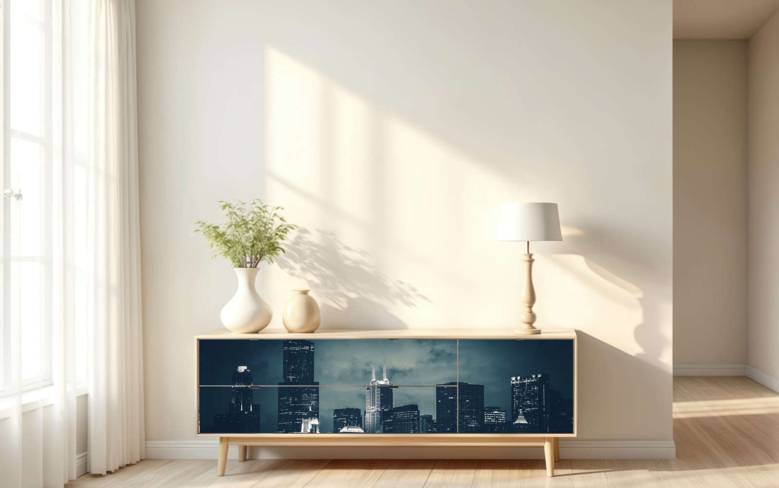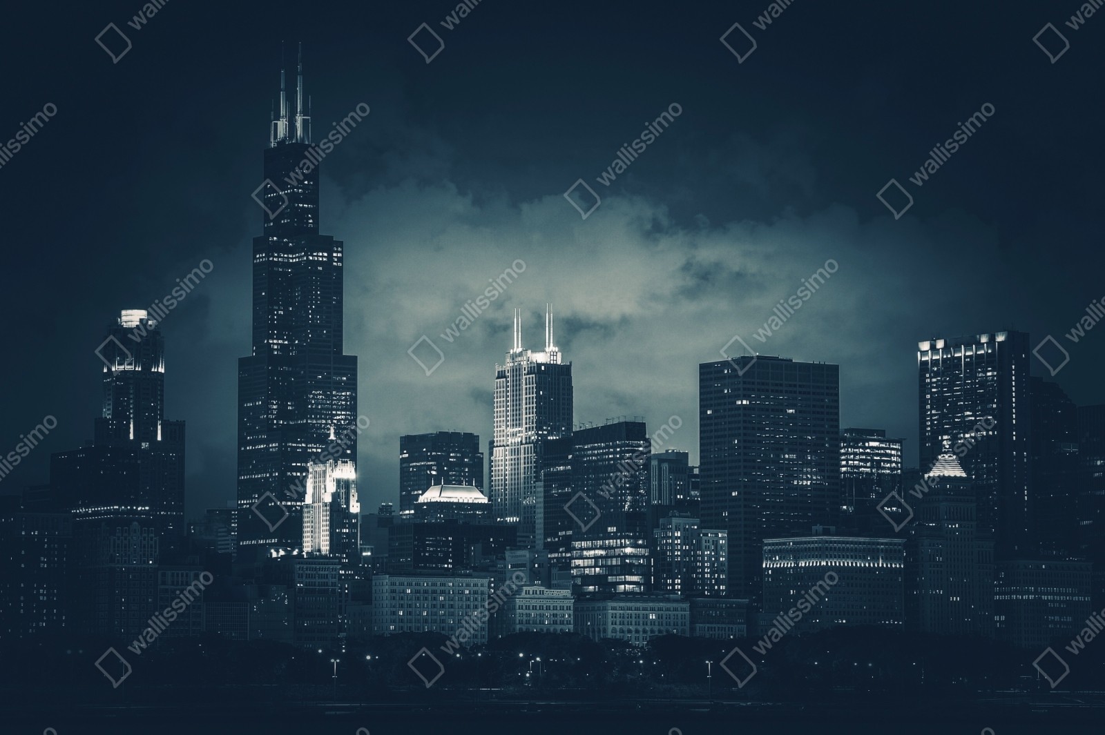 Repositionierbarer Aufkleber Chicago skyline in tiefblauen tönen