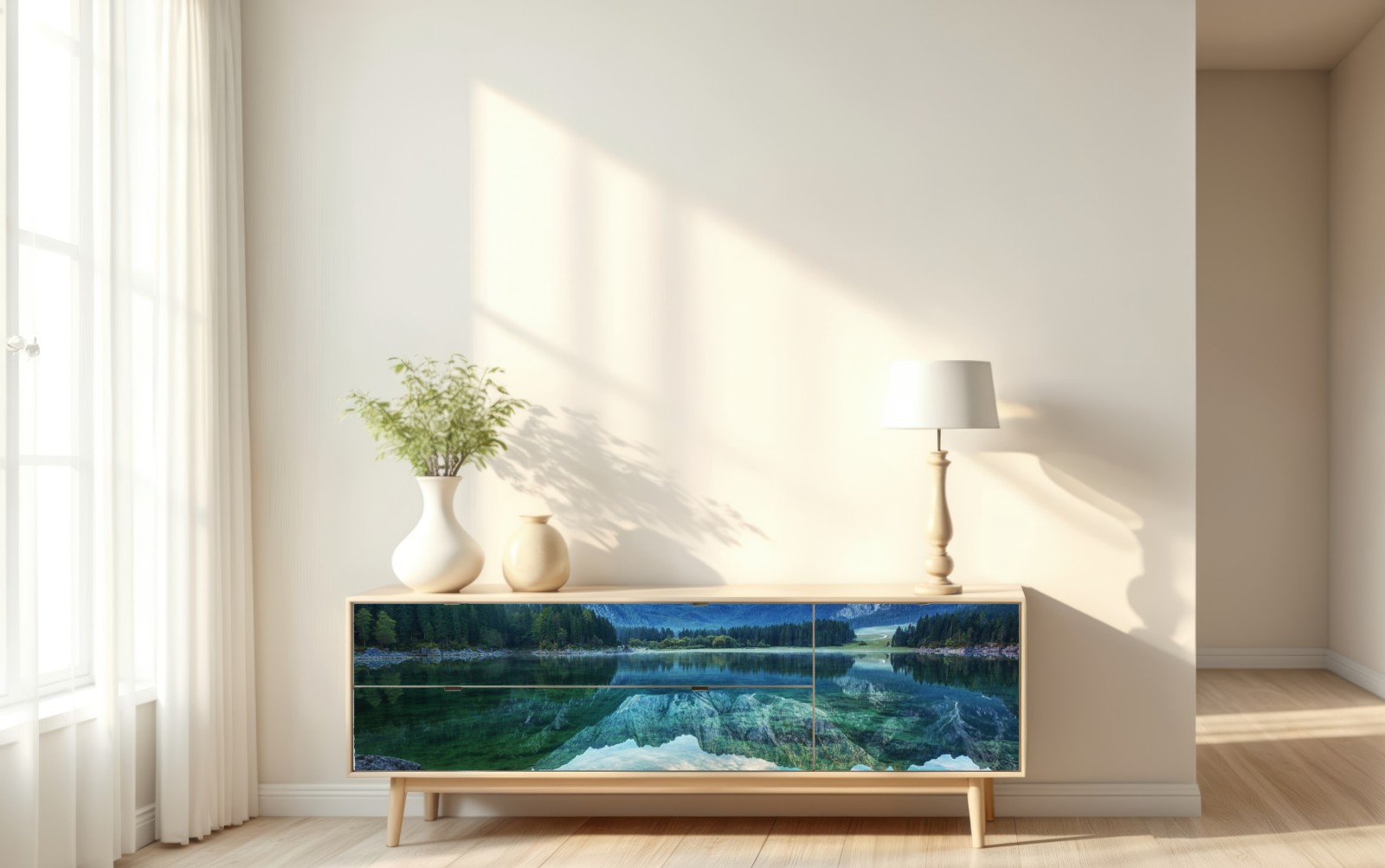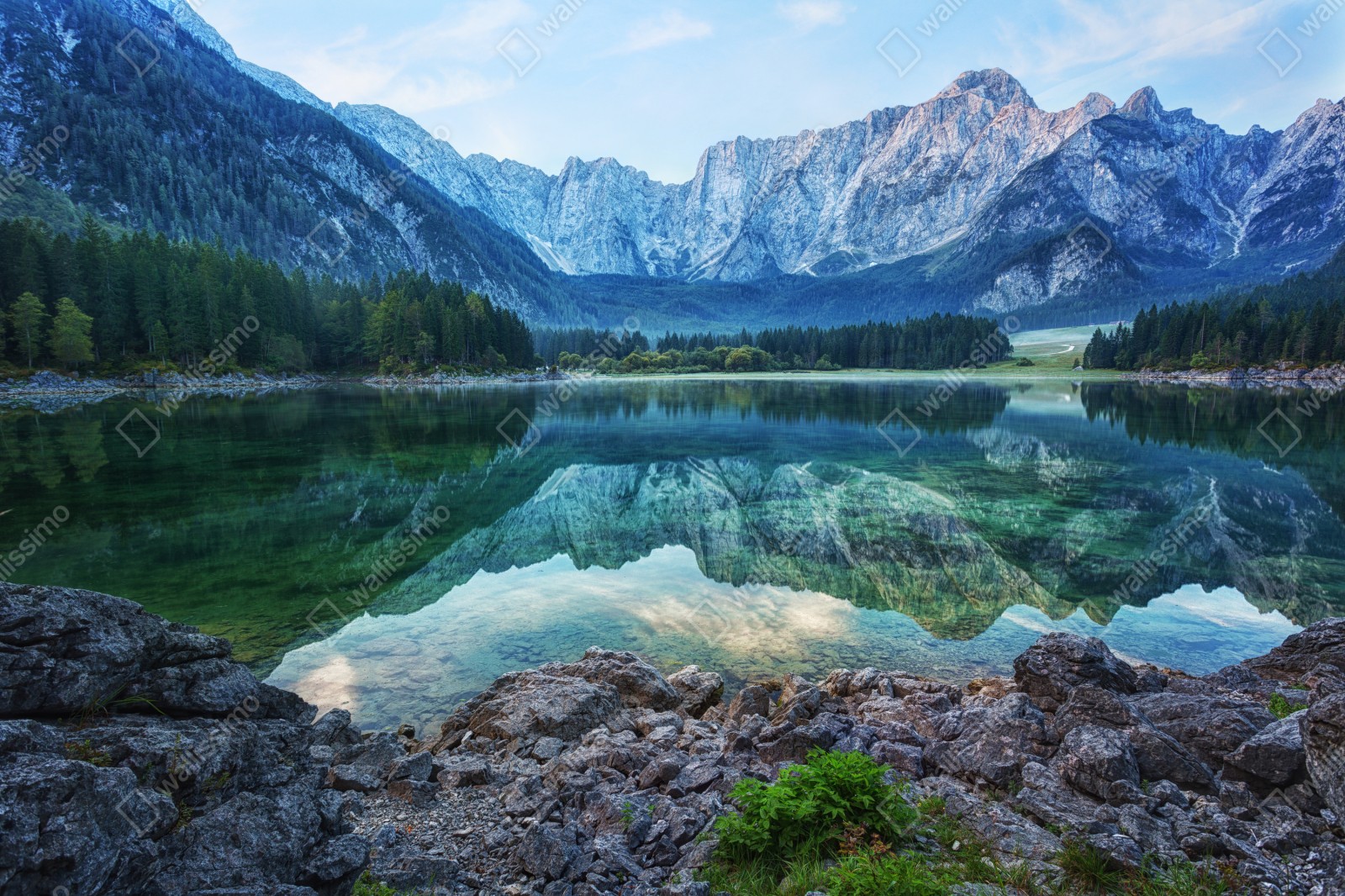 Repositionierbarer Aufkleber Früher morgen am See Fusine, Julische Alpen