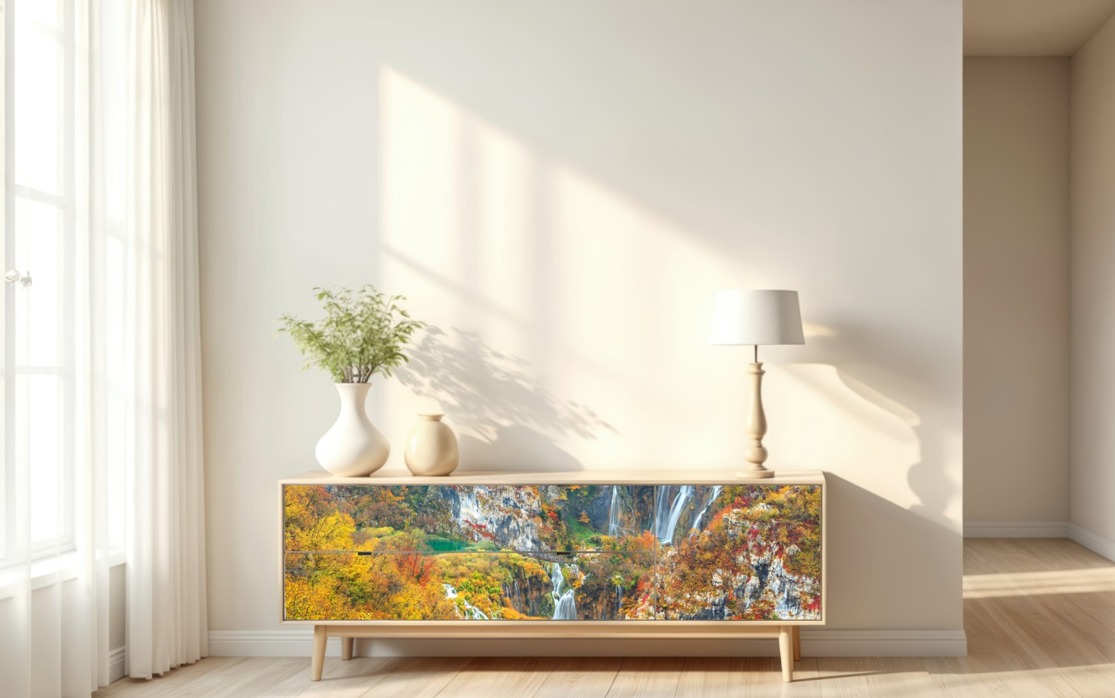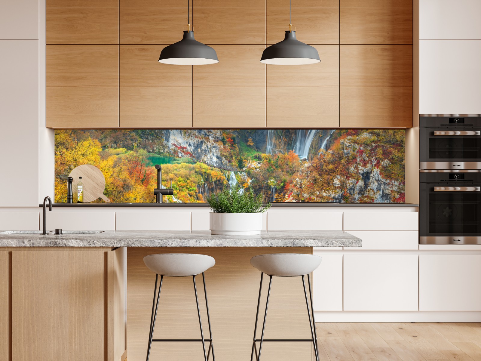 Repositionierbarer Aufkleber Herbstliche wasserfälle in einem farbenfrohen wald