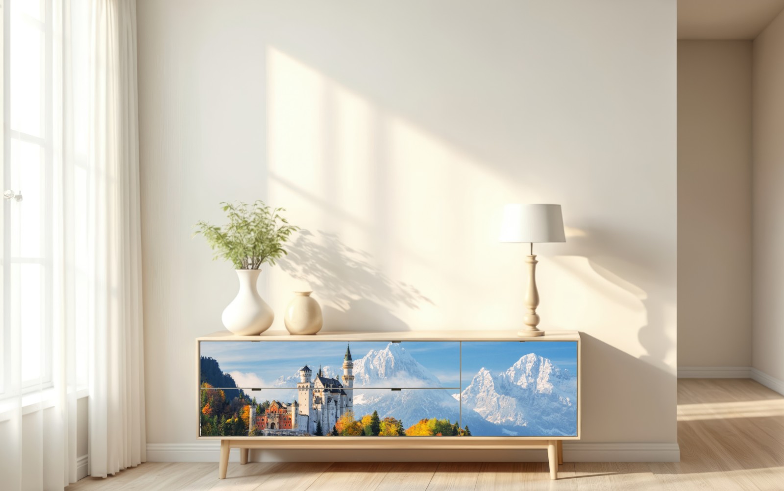 Repositionierbarer Aufkleber Märchenschloss in den Alpen