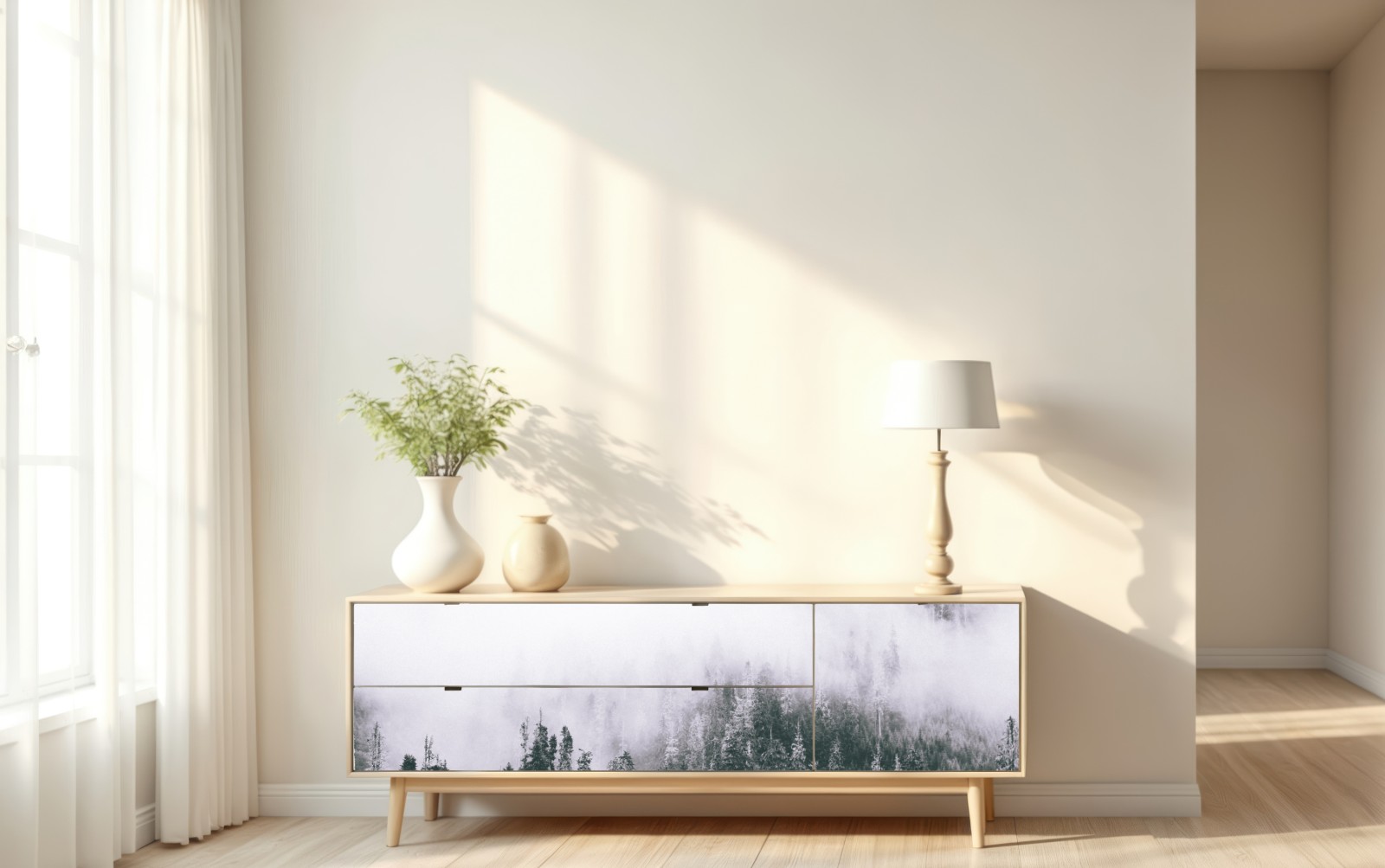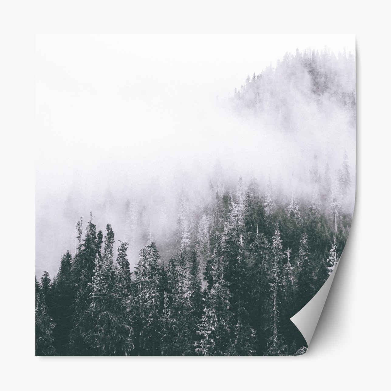 Repositionierbarer Aufkleber Nebliger immergrüner wald