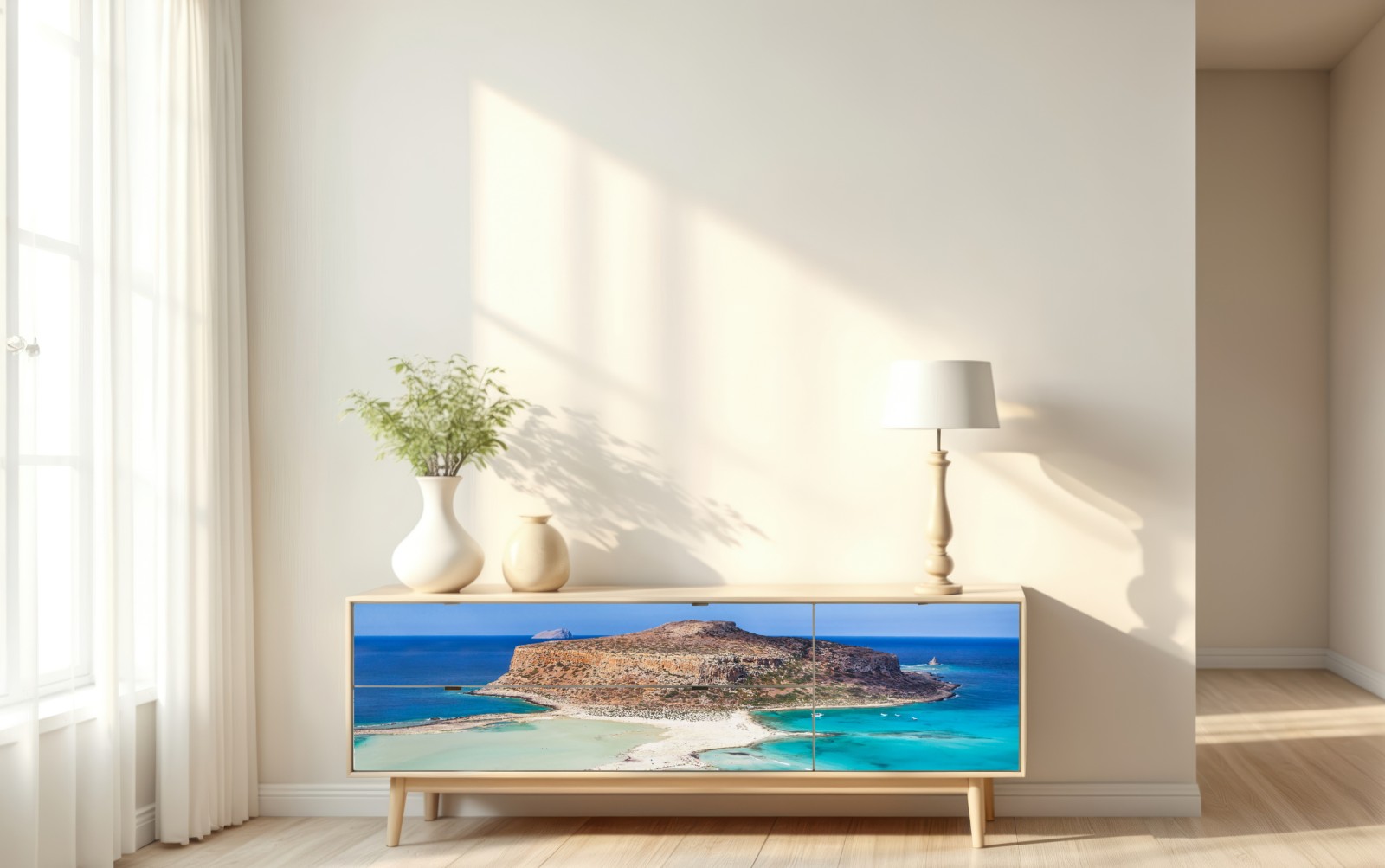Repositionierbarer Aufkleber Türkise lagune mit insel und sandstrand