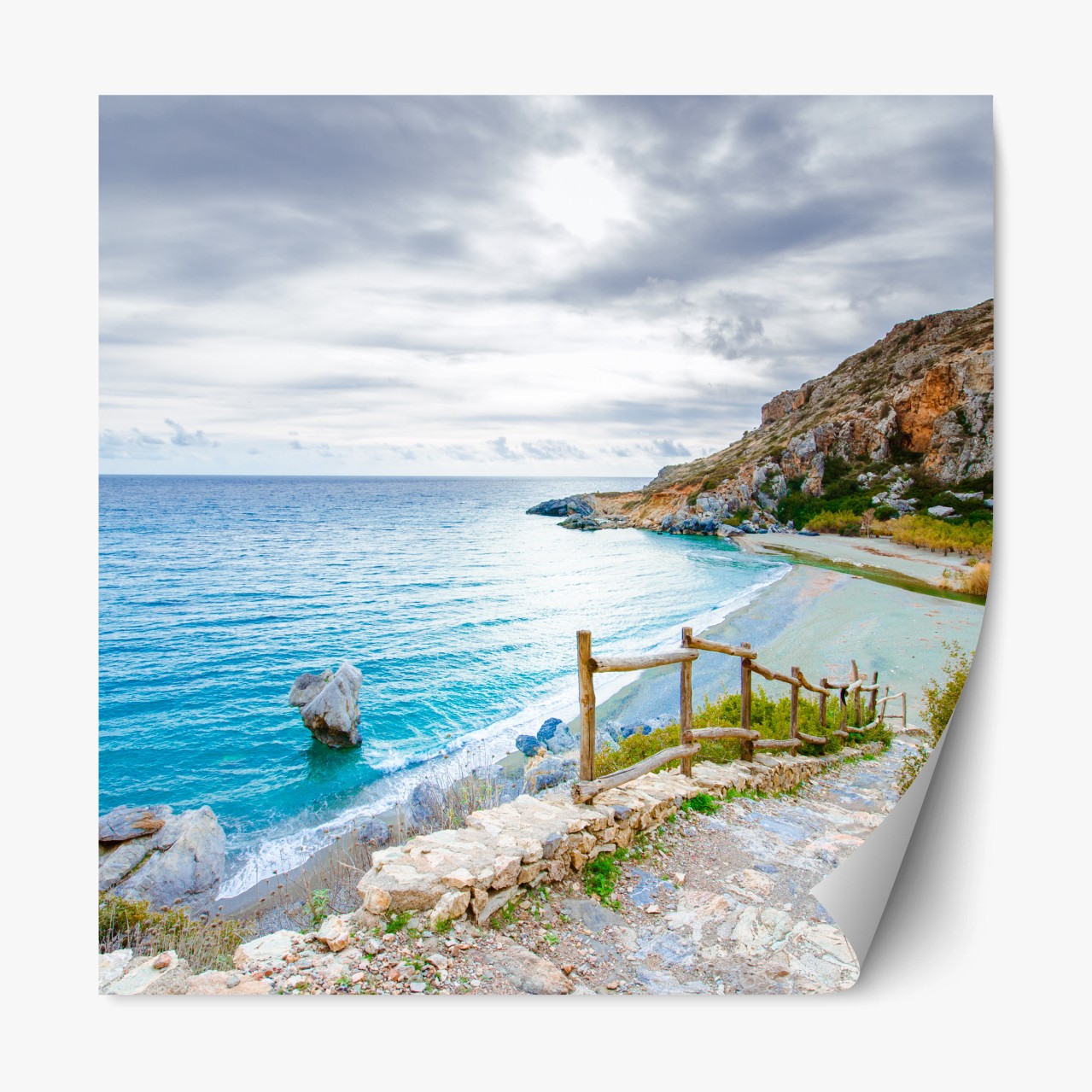 Repositionierbarer Aufkleber Ruhige türkisfarbene bucht mit küstenpfad