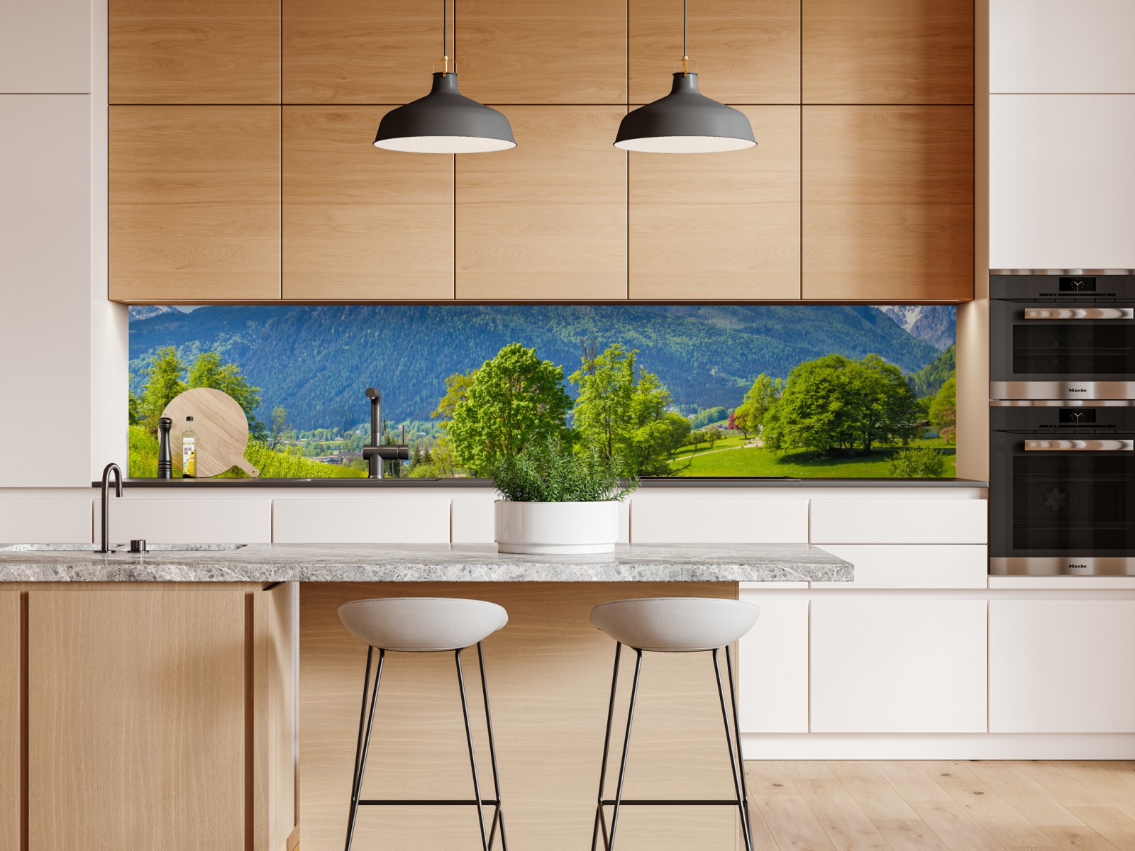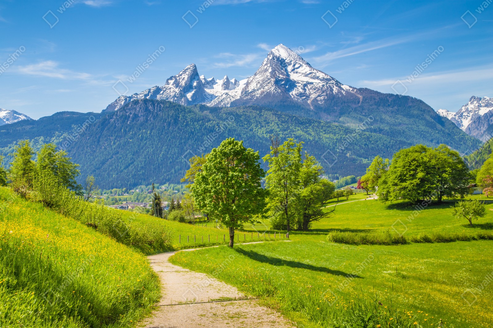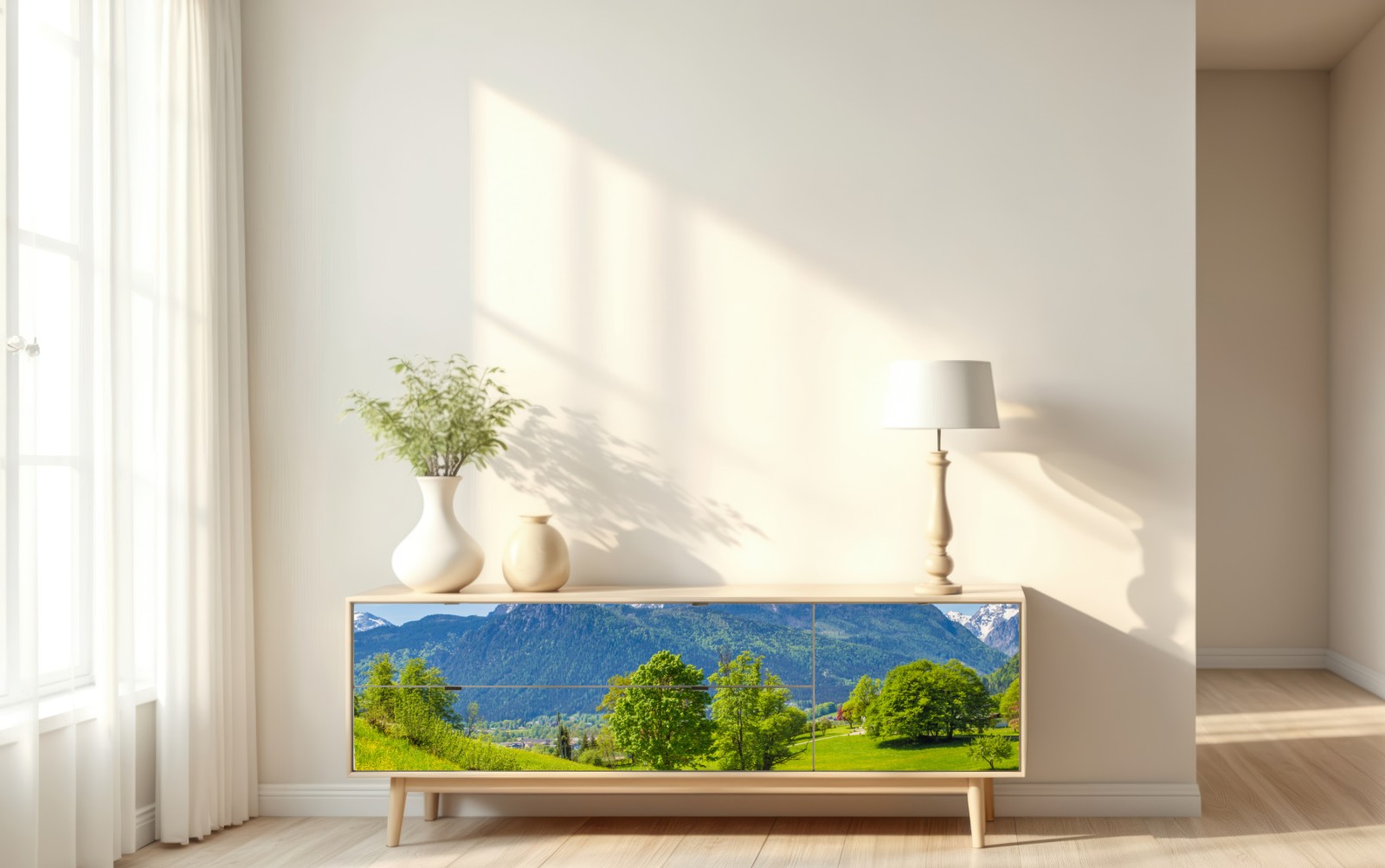 Repositionierbarer Aufkleber Ruhige alpenwiese mit berggipfeln
