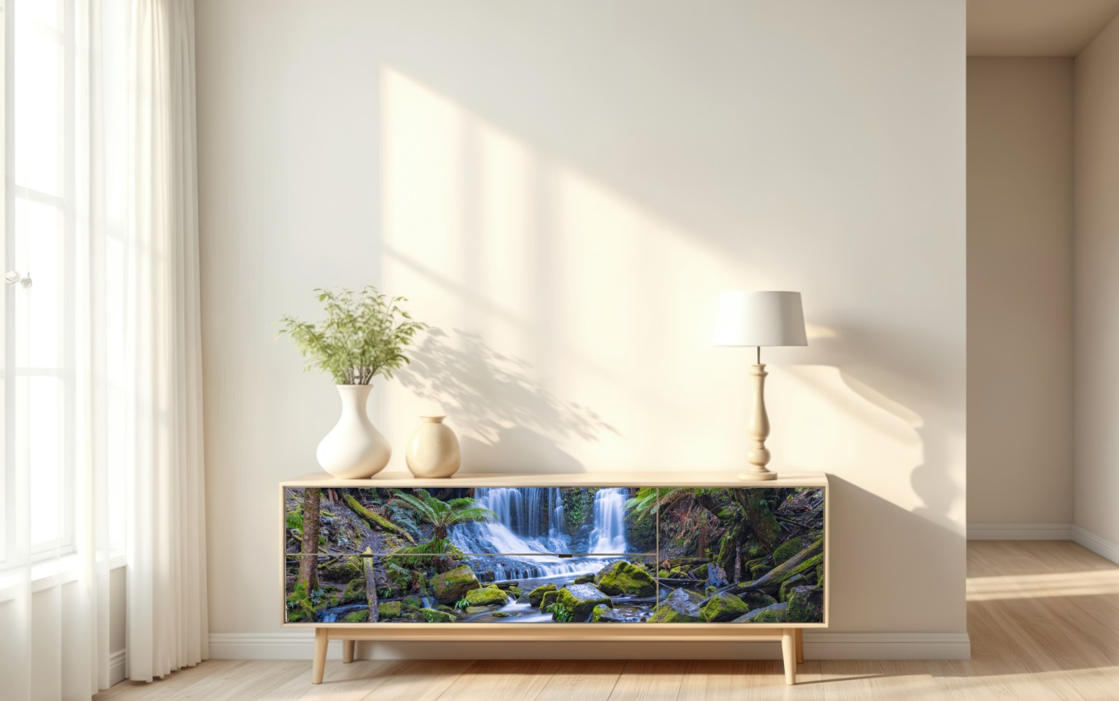 Repositionierbarer Aufkleber Friedlicher waldwasserfall