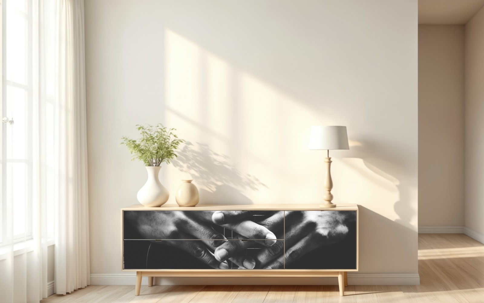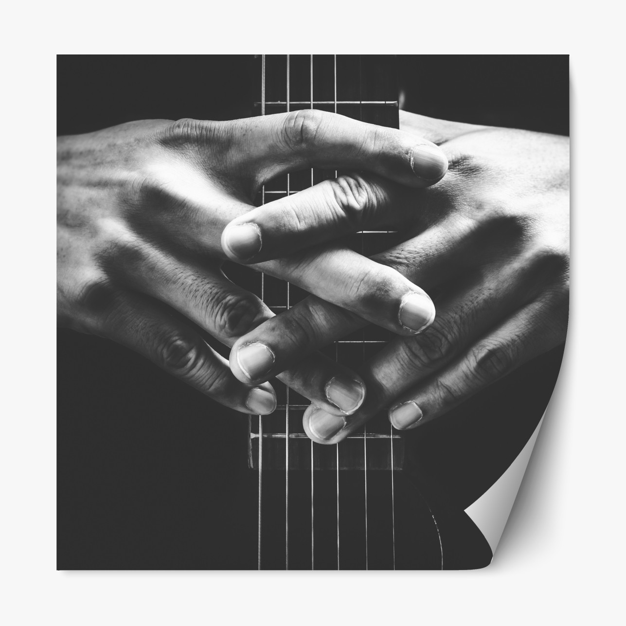 Repositionierbarer Aufkleber Verschränkte hände auf gitarrensaiten