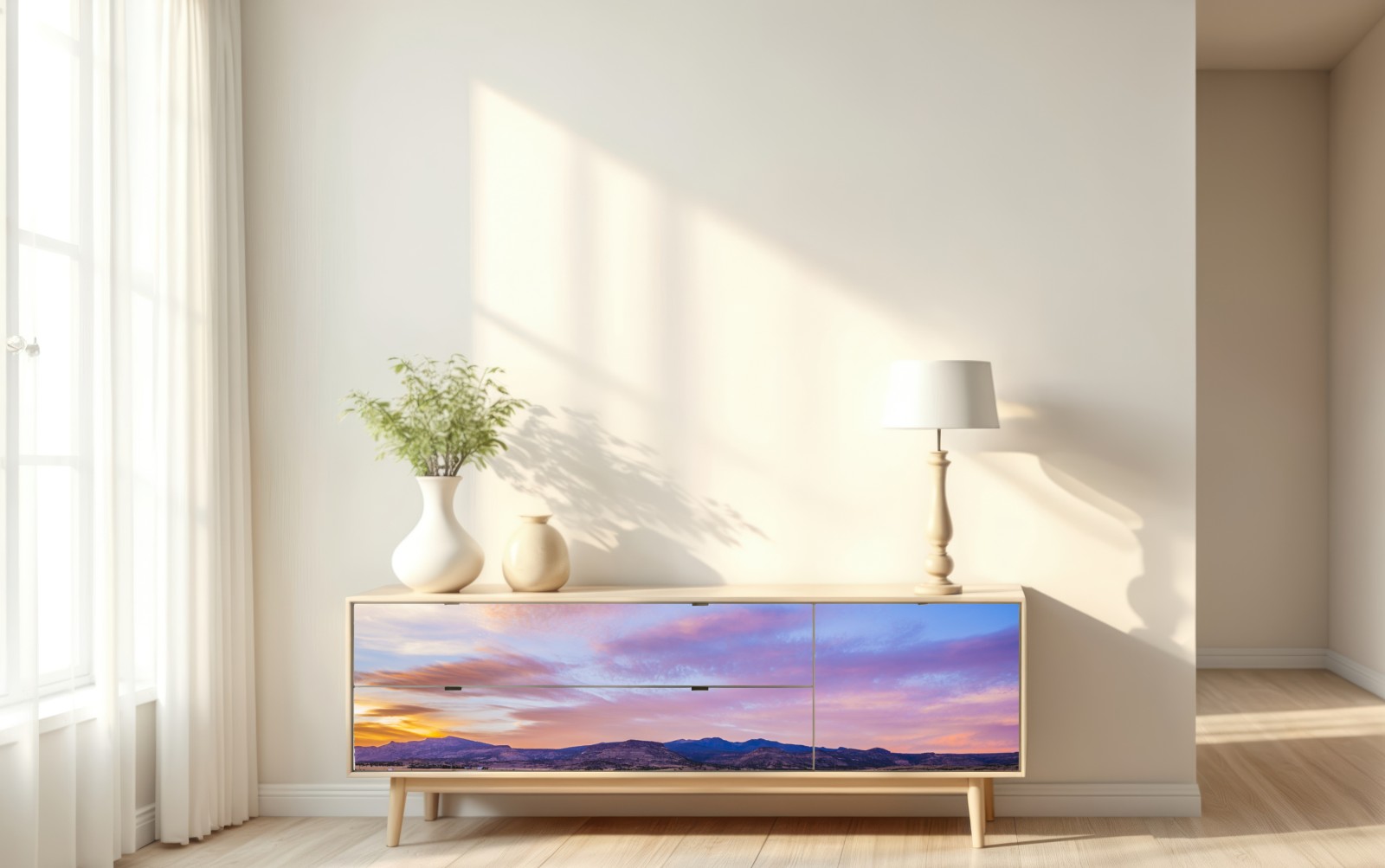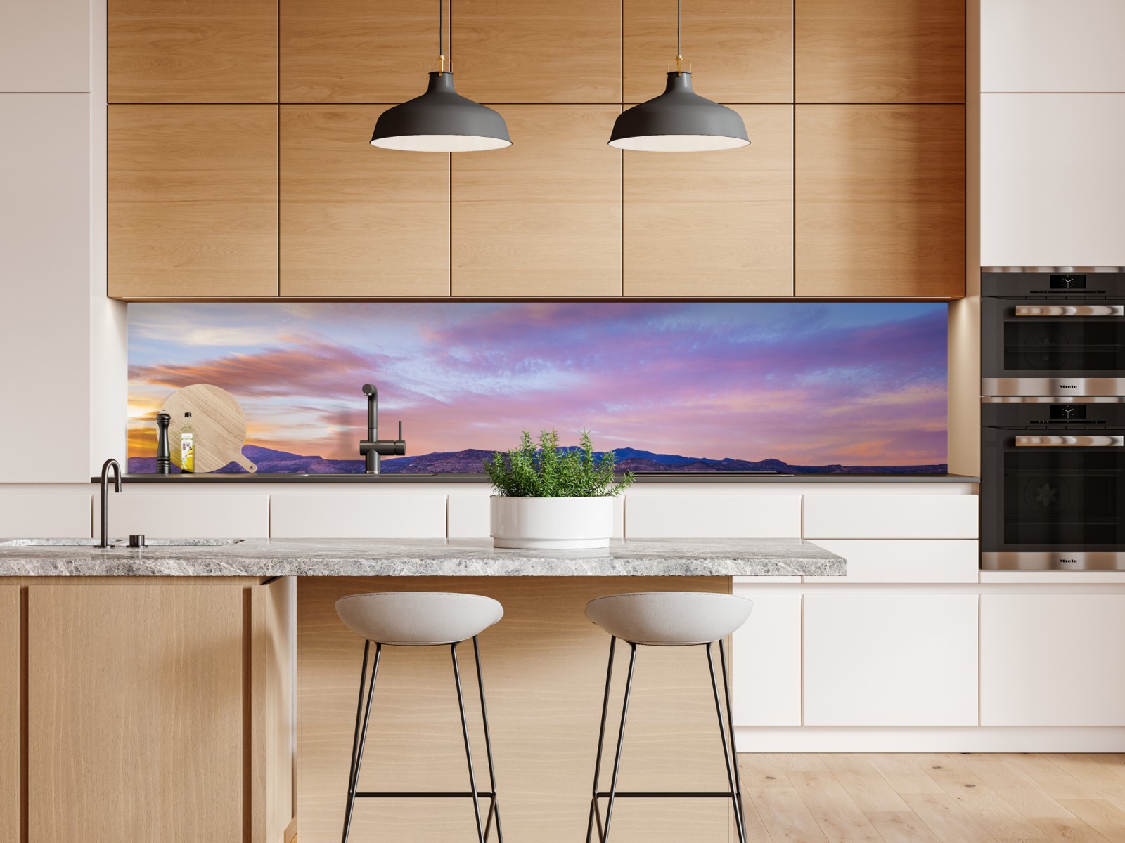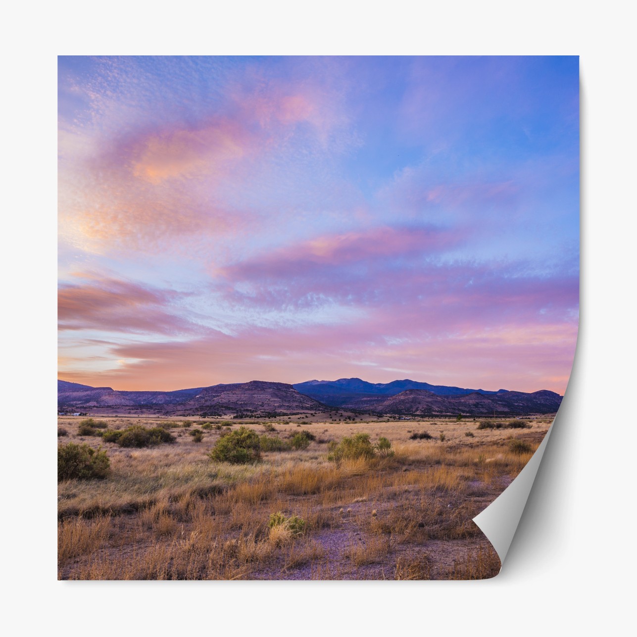 Repositionierbarer Aufkleber Pastellsonnenuntergang über wüstenbergen