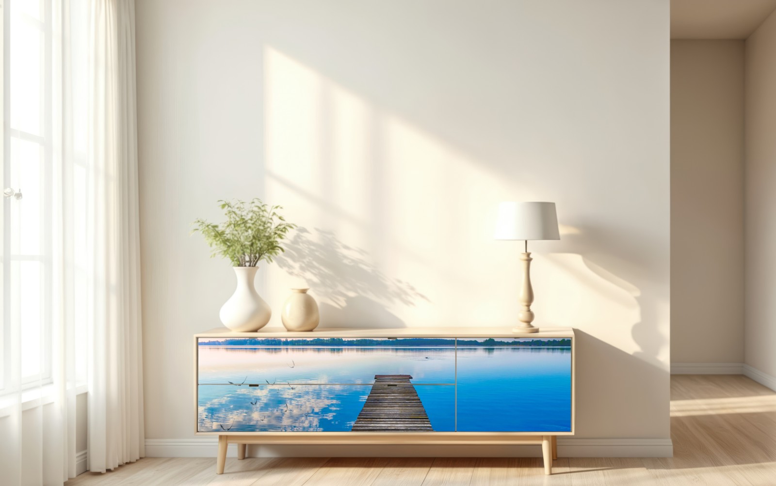 Repositionierbarer Aufkleber Ruhiger steg am See Selment Wielki, Masuren
