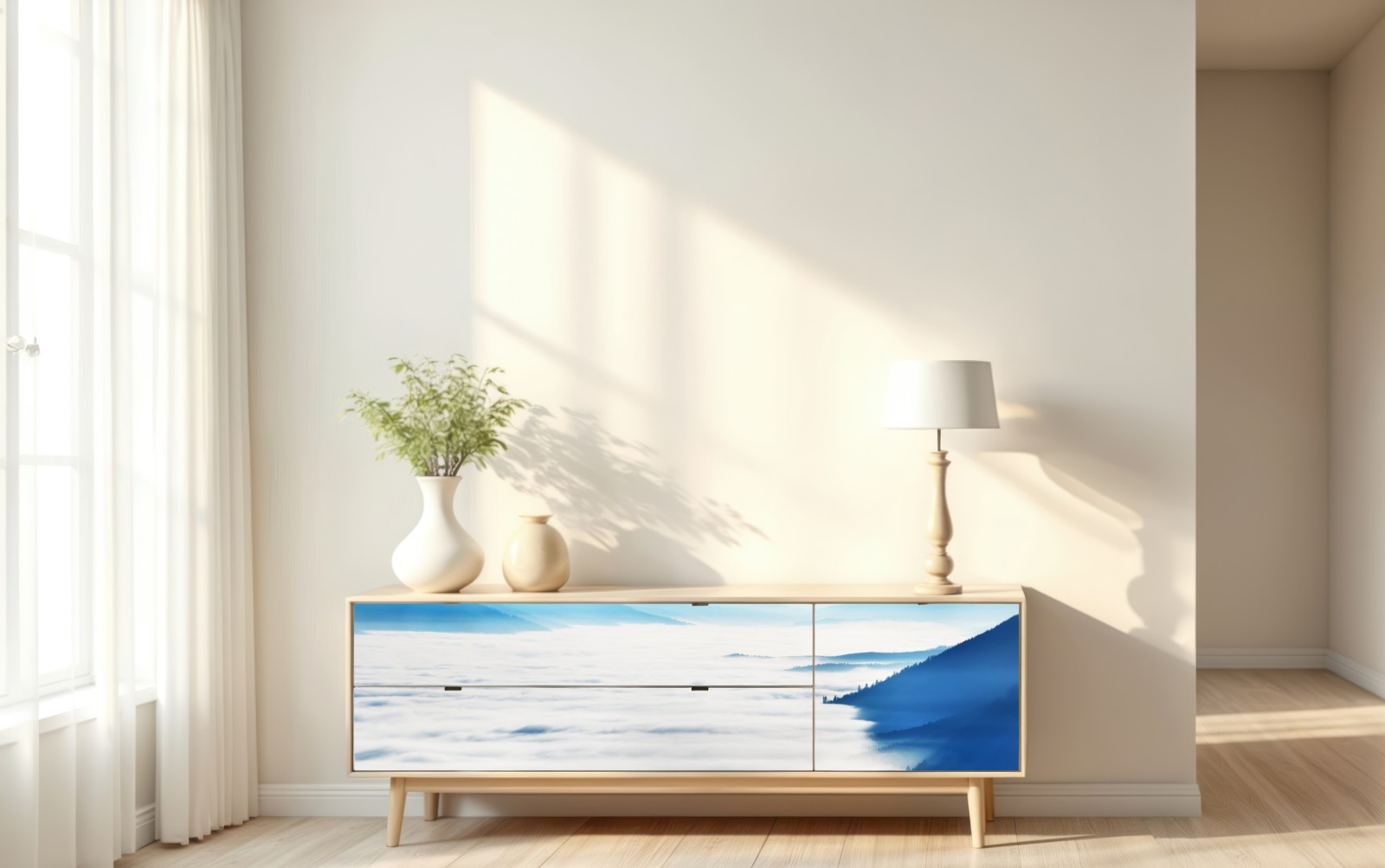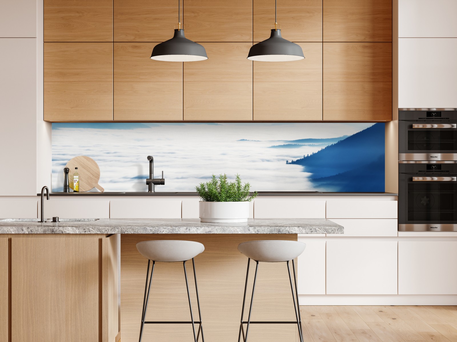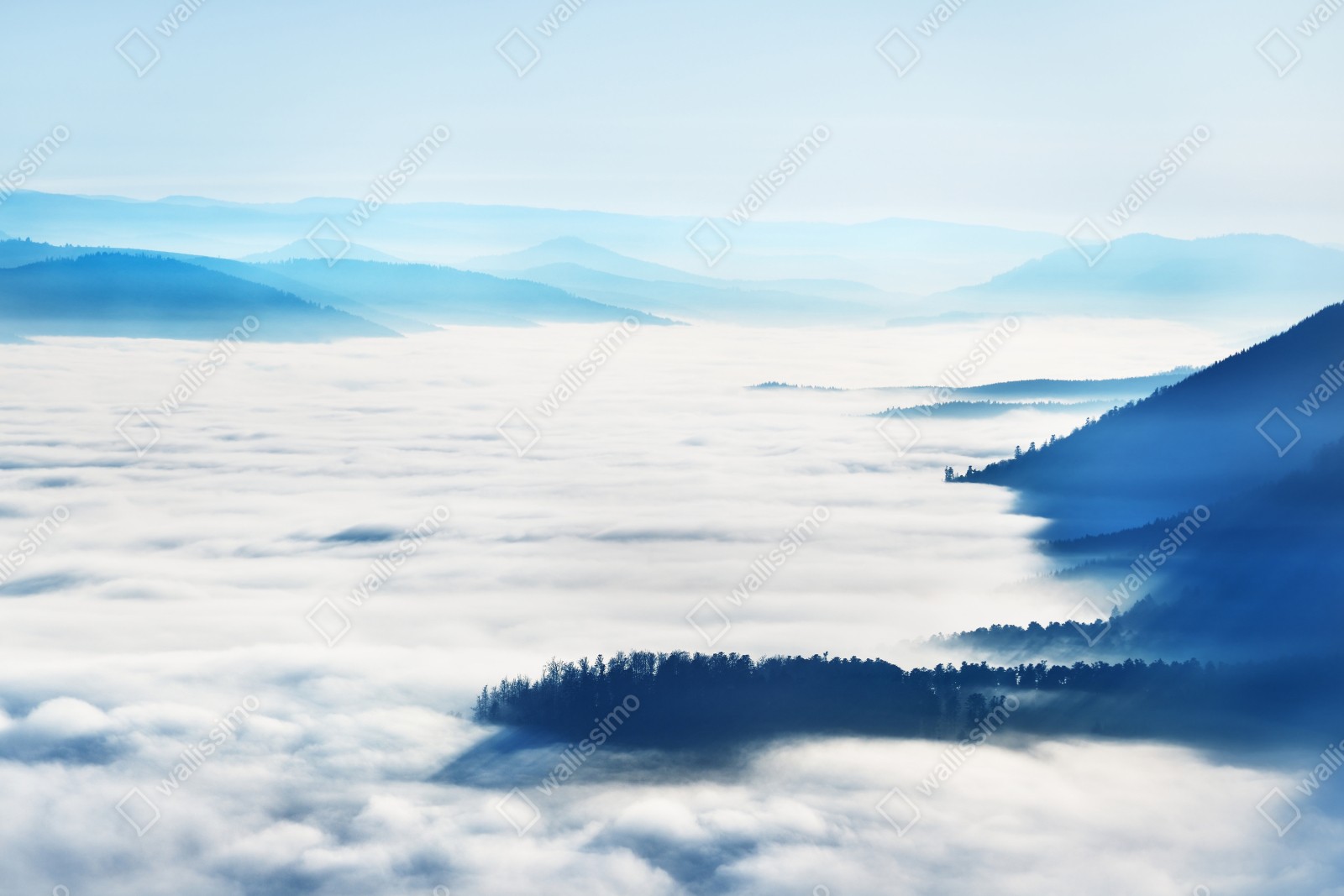 Repositionierbarer Aufkleber Neblige bergpanorama über dem tal