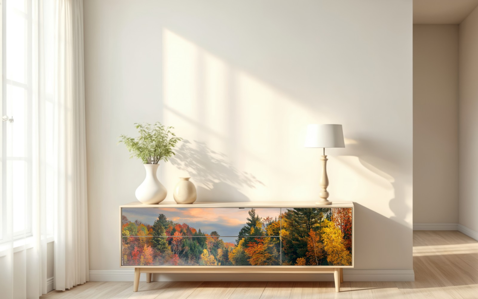 Repositionierbarer Aufkleber Nebliger herbstmorgen in Stowe
