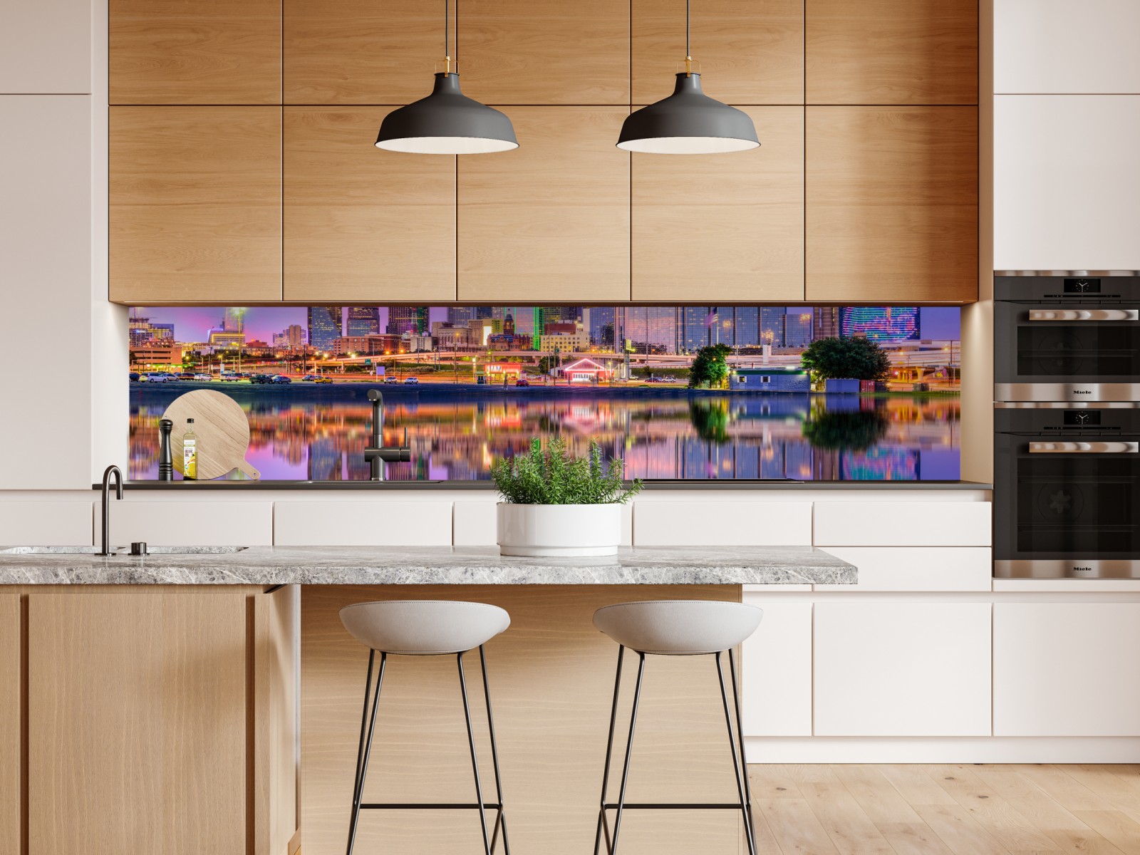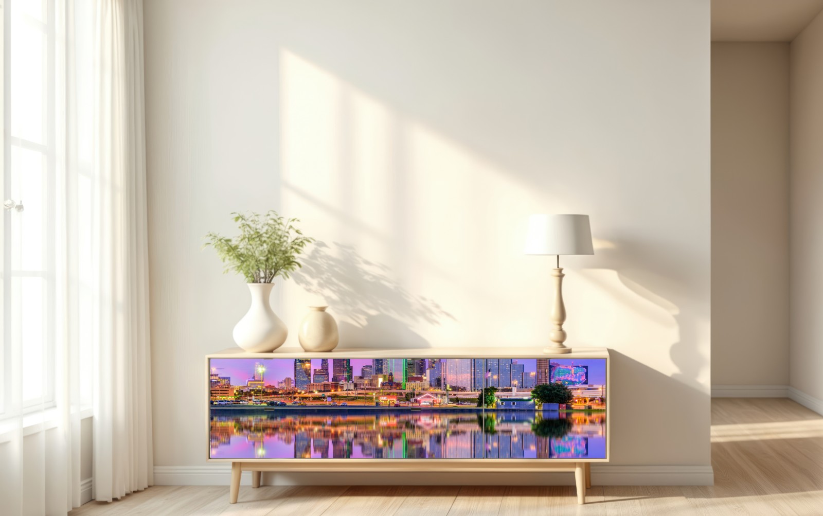 Repositionierbarer Aufkleber Dallas skyline im violetten abendlicht
