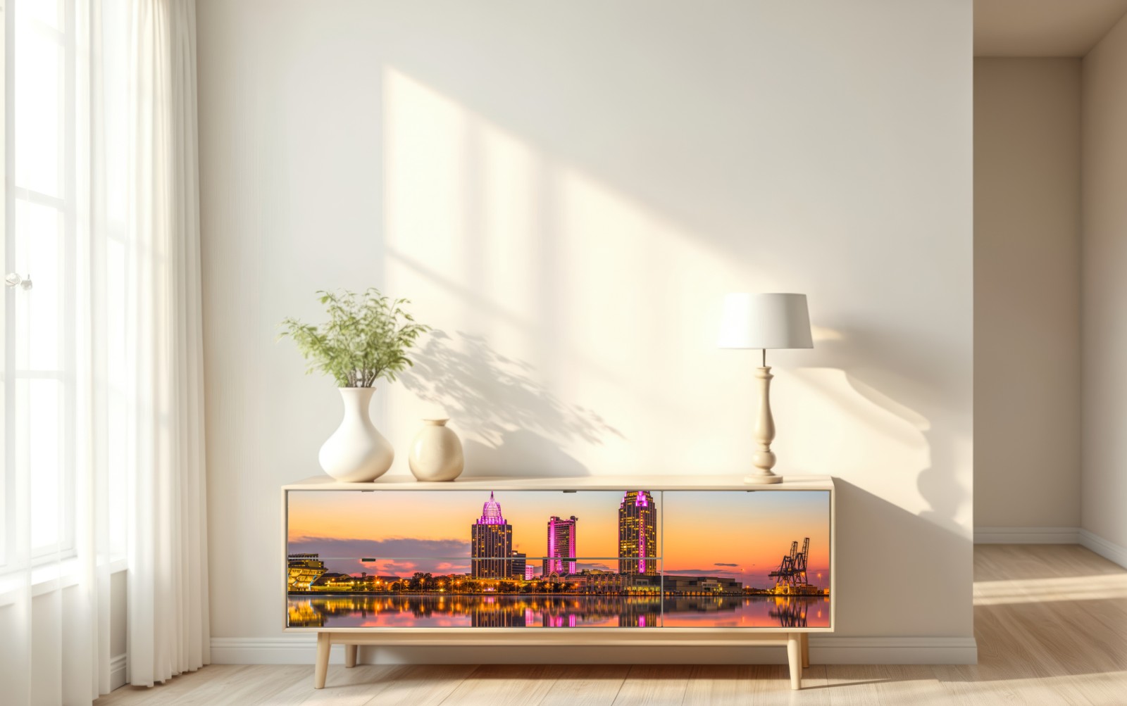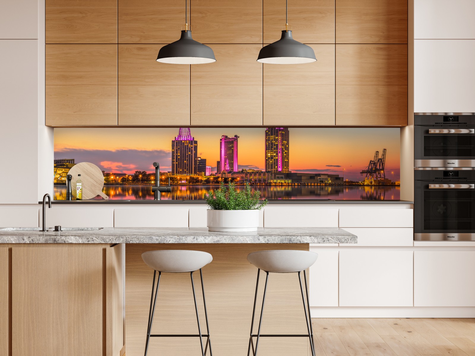 Repositionierbarer Aufkleber Panorama von Mobile bei sonnenuntergang
